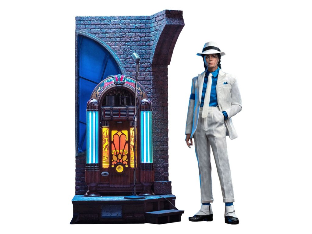 Sideshow a Damtoys představují postavu Michaela Jacksona „Smooth Criminal“ (Deluxe) ve šesté míře – hold klasice. Produkt představuje oděv, který Michael Jackson nosil ve svém krátkém filmu „Smooth Criminal“. S bezchybnými detaily reprodukce. Každý prvek, od textury vzorů kostýmu až po vintage detaily dioramy a jukeboxu, který rekreuje scénu z krátkého filmu. Nadstandardním sochařstvím hlavy, technikou implantace vlasů, vnáší klasické mistrovské dílo do reality. Spolu s technologií pohyblivého oka a jemným malováním reprodukuje výrazné rysy obličeje Michaela Jacksona. Se slavným „proti-gravitačním“ jevištním pohybem Michaela Jacksona. Překonává omezení statických akčních figur, tato kolekce je více než jen výstavní kus - evokuje dynamické napětí z krátkého filmu. Tohle není jen akční figurka, ale umělecké dílo. Uprímně zveme sběratele z celého světa, aby si vychutnali toto věčné dílo a přidali ho do své sbírky Michaela Jacksona ještě dnes! Orientační datum vydání: červen 2026