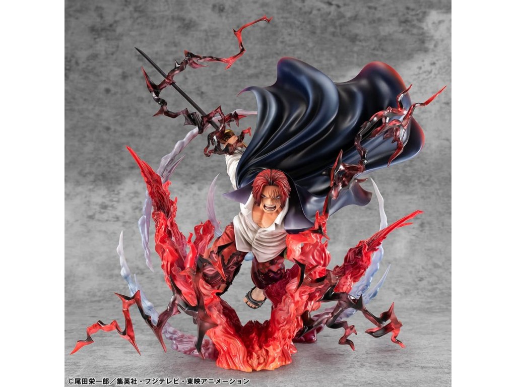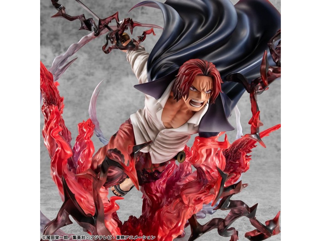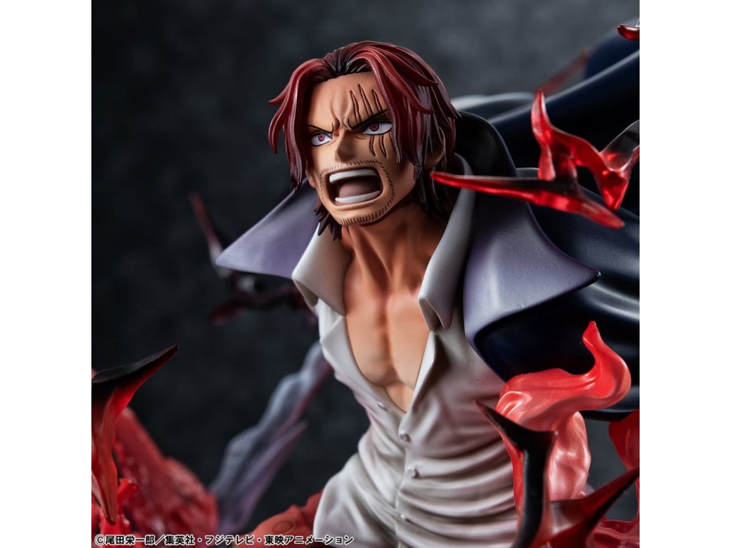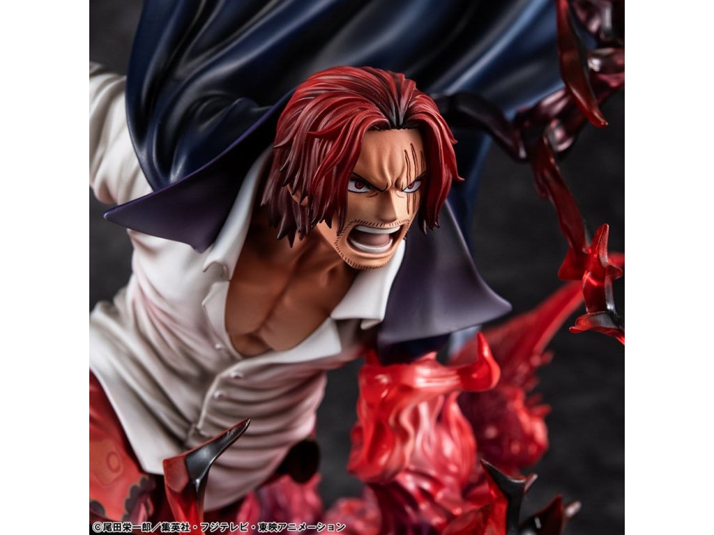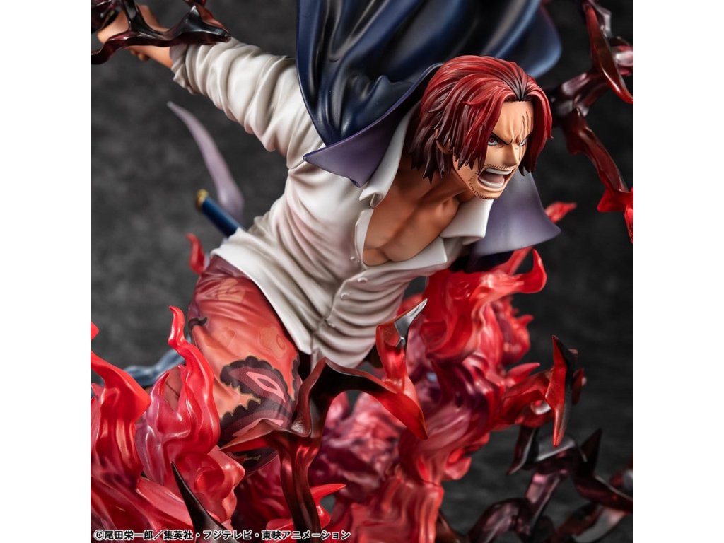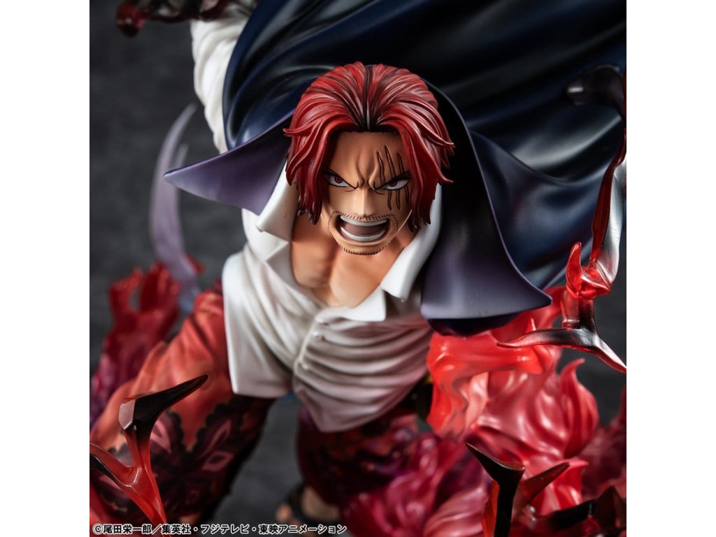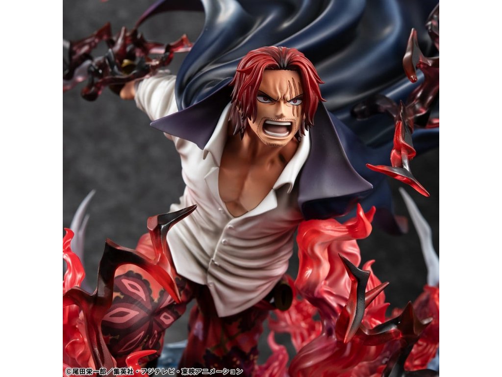 One Piece P.O.P SA-MAXIMUM PVC soška Leader of Red Hair Pirates Red-Haired Shanks Kamusari 25 cm