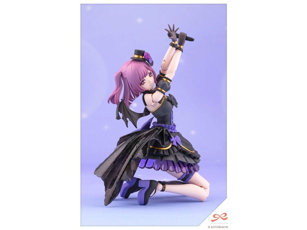 "Měsíční svit? Měsíc dnes večer září! Tsukinyonův proud je blízko!Yue Kisaragi, studentka třetího ročníku na dívčí střední škole sv. Iris Gakuen, stejné škole, kterou navštěvovaly Ritsuka Saeki a Emma Koishikawa, je vydána jako plastikový model její postavy Tsuki! Produkt nabízí:Design specializovaný pro taneční pózy:Nový design je částečně přepracován ilustrátorem En Morikurou pro zlepšení artikulace. Model byl specificky navržen tak, aby bylo možné znázornit roztomilou taneční choreografii. Vyznačuje se prodlouženými ramenními klouby, krčním kloubem schopným pohybu ve všech směrech a dvojitě kloubovými koleny pro větší pružnost. Dva klouby v trupu umožňují ohýbání dopředu nebo ohnutí dozadu, což umožňuje širokou škálu expresivních póz.Pohybující se, polohovatelné vlasy:Části účesu s polovičními copánky jsou navrženy tak, aby se pohybovaly spolu s dynamickými tanečními pózami. Zadní, boční a dvojitá sekce vlasů jsou všechny artikulovány, což jim umožňuje plynule plynout a zároveň nezasahovat do trupu.Čtyři části obličeje:Na základě Tsukiho hudebního videa obsahuje sada čtyři výrazy: Závěrečný šéf, Mňoukání na fanoušky, Intenzivní zpěv, a Soustředění. Jsou zahrnuty jak předmalované, tak nepředmalované části obličeje. Sada také obsahuje samolepky pro oči, které se dívají různými směry, takže originální tváře lze vytvořit jejich použitím s nepředmalovanými částmi obličeje.Čtyři části ofiny:Kromě výchozích ofin ozdobených kloboukem jsou zahrnuty také tři ofiny bez klobouku. Verze s kloboukem má růži a další dekorace rozdělené do čtyř různých barev. Tři části ofiny bez klobouku existují ve standardní verzi, kompatibilní s headsetem a brýlemi, což umožňuje znovu vytvořit celou řadu scén.Nově tvarované části rukou:Pět nově modelovaných částí rukou je zahrnuto pro roztomilé pózy a expresivní živá vystoupení. Idolský znamení, Roztomilý Otevřený A, Roztomilý Otevřený B, Silný Otevřený A a Silný Otevřený B jsou všechny zahrnuty spolu se sedmi standardními typy rukou, celkem 12 rukou. A co je víc! Zápěstí jsou na nově navrženém běžci, který umožňuje sestavit více kloubů současně, což usnadňuje montáž.Mikrofon a stojan:Dva typy mikrofonů jsou zahrnuty jako volitelné příslušenství pro pózy zpěvu. Mikrofon je k dispozici ve dvou stylech: Standardní typ, který lze držet v ruce, a Retro design, který se připojuje k stojanu.Mikrofonový stojan se připojuje k základně zobrazovacího stojanu použitému pro zobrazení postavy.Barva:Barvy původního designu jsou znovu vytvořeny pomocí oddělených částí a celkem se používá 12 barev, včetně základny. Látka na jejím pasu je formována ve třpytivě průhledné černé, což jí dodává jiskřivý, nápadný dojem.Bledý tón pleti:Model používá barvu pleti C, což umožňuje jeho kombinaci s modely jako je Kuon Yakushiji Maria Kagaribi Kostým a Dress Up Tělo M barva C ver.Zobrazovací základna:Podpěrný prvek zobrazovací základny má pohyblivý kloub, což umožňuje širokou škálu akčních póz. Základna je černě zbarvená.V balení je: - 1 x model Yue Kisaragi ×1 - 1 x části účesu (Poloviční twin copánky) ×1 - 4 x typy částí ofin (S kloboukem/Bez klobouku Standard/Bez klobouku s Headsetem/Bez klobouku s brýlemi) ( 1 x každý ) - 4 x typy předmalovaných částí obličeje (Závěrečný šéf/Mňoukání na fanoušky/Intenzivní zpěv/Soustředění) ( 1 x každý ) - 4 x typy nepředmalovaných částí obličeje (Závěrečný šéf/Mňoukání na fanoušky/Intenzivní zpěv/Soustředění) ( 1 x každý ) - 12 x typů částí rukou (Držící standard/Držící úzký/Držící široký/Držící kulatý/Zavřený/Ukazující/Otevřený A/Idolské znamení/Roztomilý Otevřený A/Roztomilý Otevřený B/Silný Otevřený A/Silný Otevřený B) ( vlevo a vpravo každý ) - 1 x Retro Mikrofon - 1 x Standardní mikrofon - 1 x stojan na mikrofon - 1 x zobrazovací základna - 1 x krční kloub pro Megami Device - 1 x list s nálepkami. Orientační datum vydání: červenec 2026