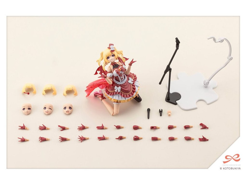 Přivozte si barvy Dreaming Style inspirované sladkým, nádherným dortíkem! ?Hlavní vlastnosti produktu:Luxusní barvení:Oblečení vyniká živou barevnou škálou zaměřenou na sametově rudou metalízu, která mu dodává nápadný, okouzlující vzhled.Látka na jejím pasu je formována v trblietavě červeném provedení, což mu dodává jiskřící, nápadný vzhled.Snadno přizpůsobitelný tón pleti:Model používá barvu kůže A, která je navržena s ohledem na přizpůsobení, takže díly lze snadno smíchat a sladit s ostatními postavami.Design specializovaný na taneční pózy:Nový design je částečně přeřazen ilustrátorkou En Morikurou pro zlepšení artikulace.Model byl speciálně navržen tak, aby bylo možné zrekonstruovat roztomilou taneční choreografii. Má rozšiřitelné klouby v ramenou, kloub v krku schopný pohybu ve všech směrech a dvojité kolenní klouby pro zvýšenou pružnost. Dva artikulační body v trupu umožňují ohnutí dopředu nebo ohyb dozadu, což umožňuje široký rozsah expresivních póz.Plynulé, pohyblivé vlasy:Části účesu polovičního dvojčete jsou navrženy tak, aby se hýbaly spolu s dynamickými tanečními pózami. Zadní, boční a dvoukotoučové sekce vlasů jsou všechny artikulované, což jim umožňuje přirozeně proudit, aniž by rušily trup. Vlasy jsou světle žluté, stejná barva, která se používá v sadě Ritsuka Saeki St. Iris Gakuen Girls' High School Summer Clothes.Čtyři části obličeje:Na základě hudbeního videa Tsuki obsahuje souprava čtyři výrazy: konečná tvář šéfa, mrkání na fanoušky, intenzivní zpěv a soustředění. Jsou zahrnuty jak předem malované, tak nemalované části obličeje.Sada také obsahuje nálepky pro oči, které se dívají různými směry, takže originální tváře mohou být vytvořeny jejich použitím s nemalovanými částmi obličeje.Čtyři části ofiny:Kromě výchozích ofin ozdobených kloboukem jsou součástí také tři ofiny bez klobouka. Verze s kloboukem má růži a další ozdoby rozdělené do čtyř různých barev.Tři části ofiny bez klobouka jsou dodávány ve standardním provedení, kompatibilním s headsetem a kompatibilním s brýlemi, což umožňuje znovu vytvořit různé scény.Nově vyřezávané části rukou:Bylo zahrnuto pět nově vyřezávaných částí rukou pro roztomilé pózy a expresivní živá vystoupení. Znamení idolů, roztomilé otevření A, roztomilé otevření B, silné otevření A a silné otevření B byly všechny zahrnuty spolu se sedmi standardními typy rukou, celkem 12 rukou.Co víc! Kliky na zápěstí jsou na nově navržené podložce, která umožňuje sestavit několik kloubů současně, což usnadňuje montáž než kdykoli předtím.Mikrofon & stojan:Dva typy mikrofonů jsou zahrnuty jako volitelné příslušenství pro zpěv. Mikrofon je dodáván ve dvou stylech: standardní typ, který lze držet v ruce, a retro designový typ, který se připevňuje k stojanu. Mikrofonový stojan se připojuje k základně displeje ve stylu skládačky, která se používá k zobrazení postavy.Podstavec na displej:Nosný prvek podstavce na displej má pohyblivý kloub, což umožňuje široký rozsah akčních póz.Přiložené položky:- 1 x model Yue Kisaragi- 1 x části účesu (půltwin ohnivky)- 4 x druhy částí ofin (s kloboukem / bez klobouka standard / bez klobouka s headsetem / bez klobouka s brýlemi) - 4 x druhy předem namalovaných částí obličeje (konečná tvář šéfa / mrkání na fanoušky / intenzivní zpěv / soustředění) - 4 x druhy nemalovaných částí obličeje (konečná tvář šéfa / mrkání na fanoušky / intenzivní zpěv / soustředění) - 12 x druhy částí rukou (držení standard / držení úzké / držení široké / držení kruhového / zavřené / ukazující / otevřené A / značka idolů / roztomilé otevřené A / roztomilé otevřené B / silné otevření A / silné otevření B) druh levej a pravej ruky- 1 x retro mikrofon - 1 x standardní mikrofon - 1 x mikrofonový stojan - 1 x. podstavec na displej - 1 x krční kloub pro Megami Device - 1 x list nálepek. Orientační datum vydání: červenec 2026