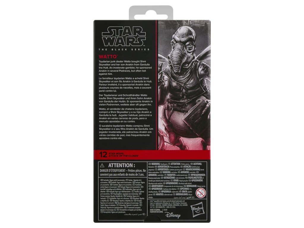 Star Wars The Black Series zahrnuje 6palcové akční figurky, vozidla a předměty pro hraní rolí z více než 40letého dědictví galaxie Star Wars, které fanouškům umožňují vytvářet galaktické scény s věrností ke komiksovým knihám, filmům, seriálům a dalšímu z Star Wars. Tato akční figurka Star Wars od firmy Hasbro je detailně zpracována tak, aby vypadala jako Watto ze Star Wars: Útok klonů. S úchvatnými rysy a dekorací, The Black Series ztělesňuje kvalitu a realismus, které milují oddaní fanoušci Star Wars. Ať je s vámi Síla! (Další produkty se prodávají samostatně. Podléhá dostupnosti.)