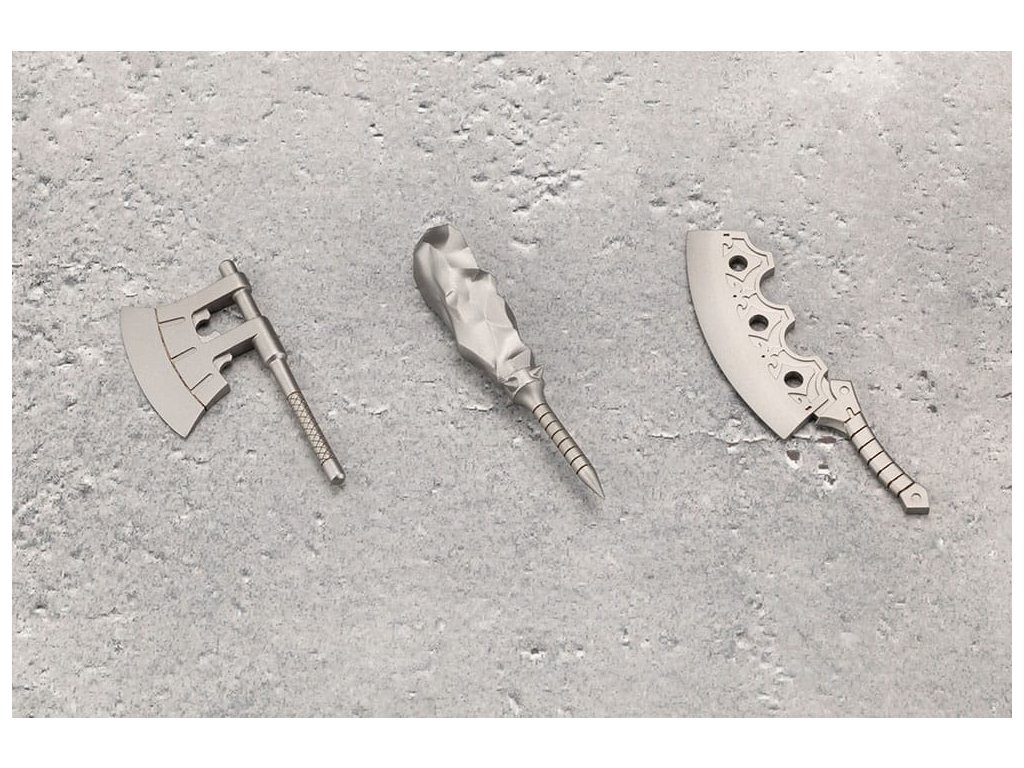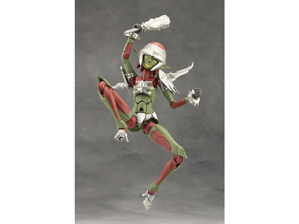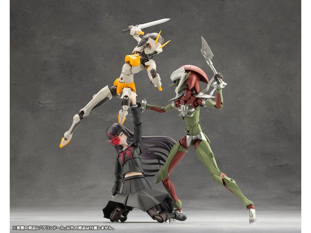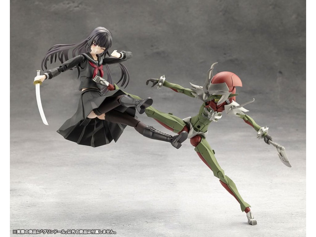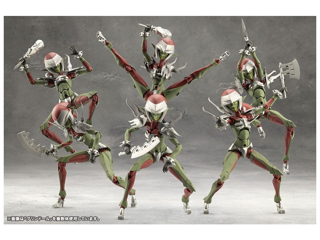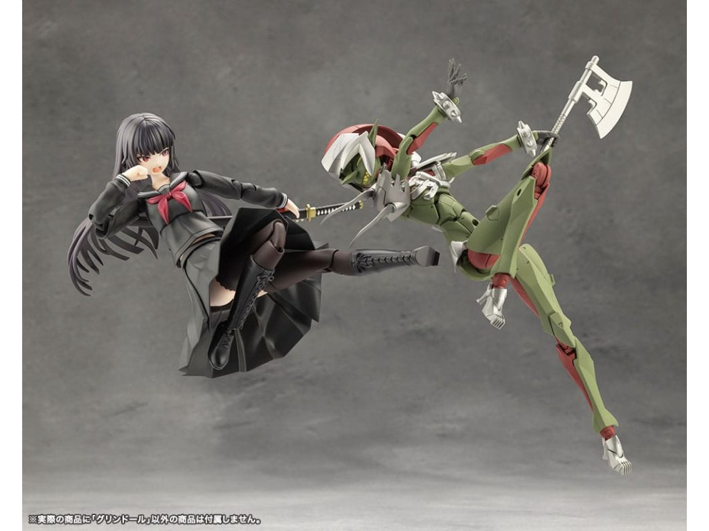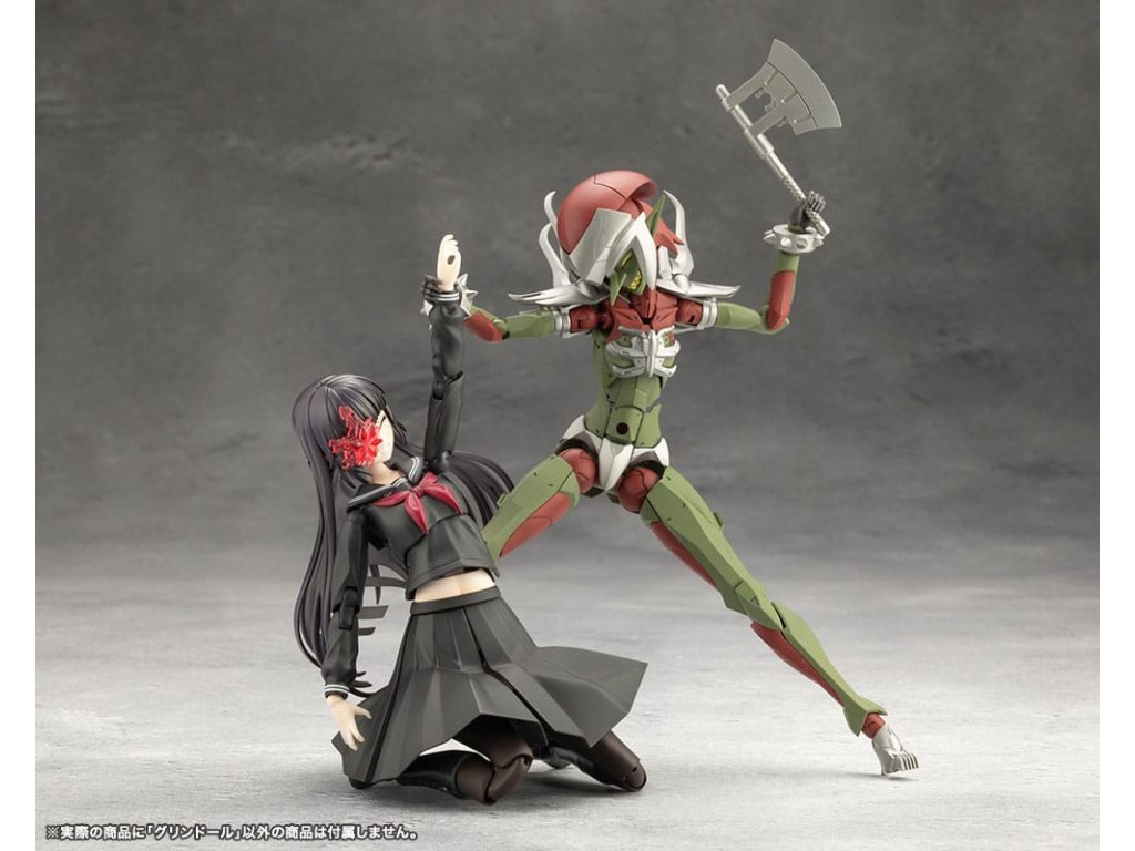 Představujeme Grim Doll, skřítkovský typ Another, který je vhodný pro cokoli od komických až po vážné role. Tato postava byla navržena tak, aby vyhovovala pozici robeže pro uživatele, kteří chtějí záporáky odpovídající jejich hrdinům. Model má nově navrženou hlavu, brnění na paži a tři nové zbraně. Hlava: Hlava má masku se zlým úšklebkem, který odpovídá názvu Grin Doll. Hlava může být sestavena s nebo bez zubů. Unikátní dlouhý nos lze také odstranit, čímž postavě dodáte zcela jinou atmosféru. Stále také disponuje schopností vybavit díly obličeje a ofiny Sousai Shojo Teien. * Díly od Ao Gennai a Bukiko Kotobuki nelze osadit, protože používají unikátní standardy. Zbraně: Součástí stavebnice je obušek, sekera a mačeta. Při zobrazování více modelů může vybavení různých zbraní dát každé postavě jejich vlastní osobnost. Sekera a mačeta mohou být osazeny na tvrdé body po celém těle pomocí přiložených spojovacích kloubů o průměru 3 mm. Funkce artikulace: Model má v celém těle přibližně 50 bodů ohybu. Marionetové tělo znamená, že může být zobrazeno v širokém spektru pozic, od vážných až po komické. Kolenní kloub sestává z jediné vrstvy kloubů a lze jej ohnout dovnitř natolik, aby model mohl sedět s jedním kolenem nahoru. Ramena jsou složena z více kloubů, takže mohou být vytlačena dopředu a ruce můžete zkřížit. Rozsah pohybu kolem ramen také podporuje širokou škálu pozic, jako jsou dynamické aktuální pózy a dvouruční držení meče. Torzo má také vynikající pohyblivost, takže postava může být zobrazena při ležení. Krk může pohybovat ve všech směrech, což umožňuje pozice, kde je hlava odvrácena. Pravý a levý kyčelní kloub se mohou pohybovat nezávisle ve všech čtyřech směrech, což umožňuje uživatelům znázornit natahování a špičky. Postava má neuvěřitelný rozsah pozic, od vysokých kopyt až po sezení v kouli. Pro zadní brnění je také jednodílná verze, která není rozdělena na levou a pravou stranu pro jakékoli pózy, které si dokážete představit. Balení obsahuje: - 1 x model Grin Doll - 1 x sedm typů dílů rukou - 1 x obušek - 1 x sekera - 1 x mačeta - 1 x standardní kloub zápěstí a mezera (levá a pravá) - 2 x 3 mm kloub - 1 x jednodílné zadní brnění.