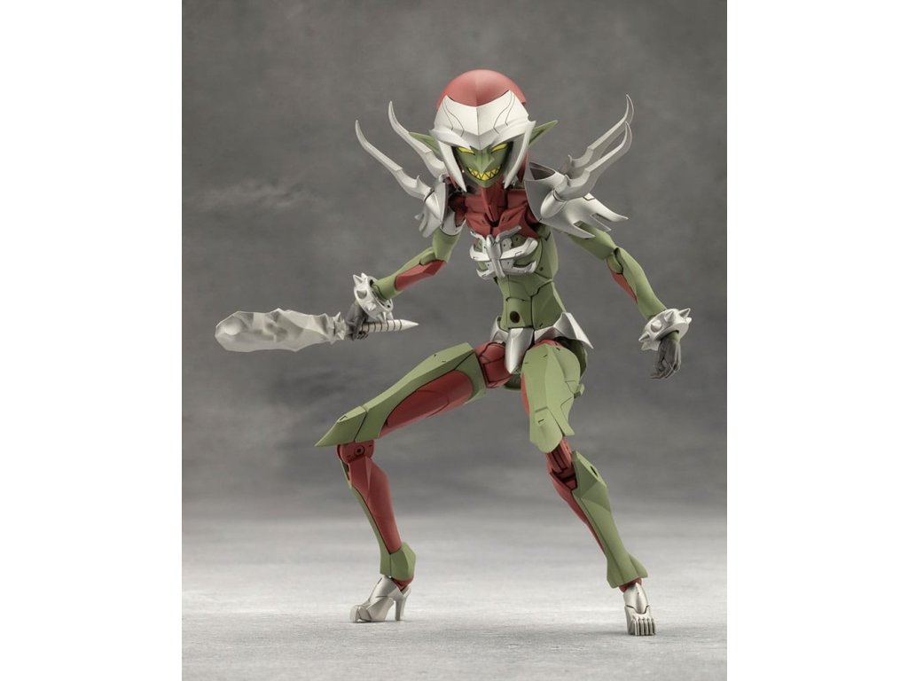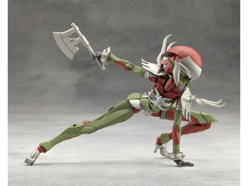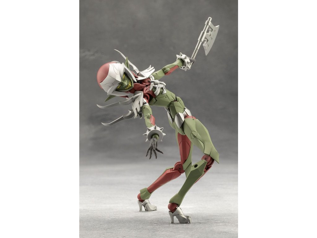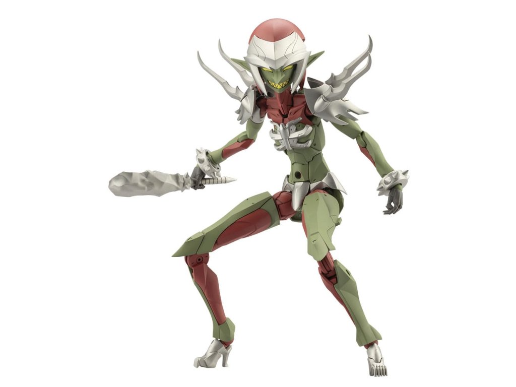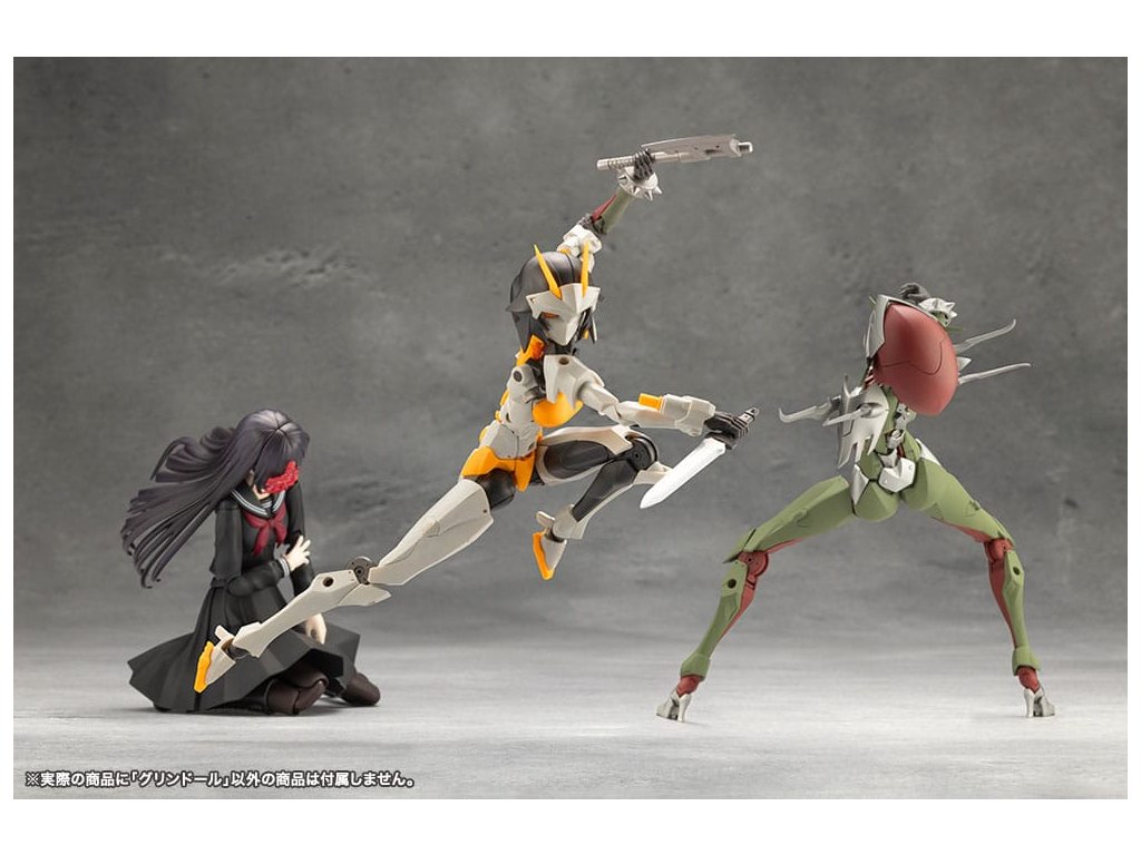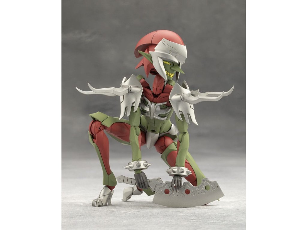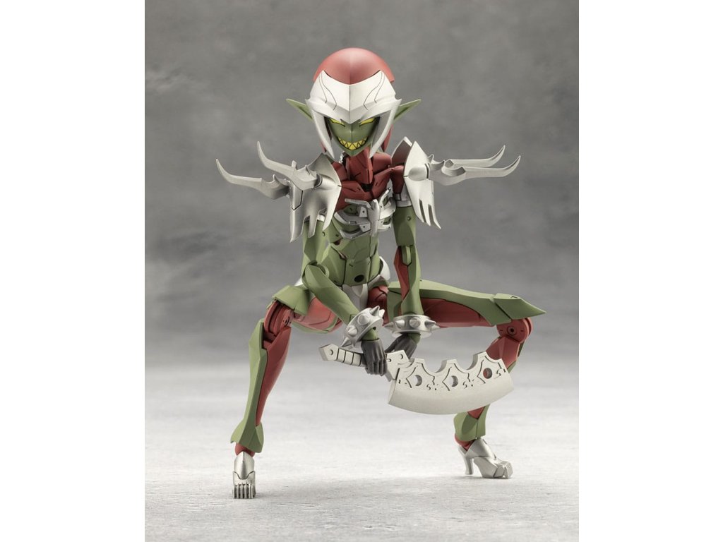 Představujeme Grim Doll, skřítkovský typ Another, který je vhodný pro cokoli od komických až po vážné role. Tato postava byla navržena tak, aby vyhovovala pozici robeže pro uživatele, kteří chtějí záporáky odpovídající jejich hrdinům. Model má nově navrženou hlavu, brnění na paži a tři nové zbraně. Hlava: Hlava má masku se zlým úšklebkem, který odpovídá názvu Grin Doll. Hlava může být sestavena s nebo bez zubů. Unikátní dlouhý nos lze také odstranit, čímž postavě dodáte zcela jinou atmosféru. Stále také disponuje schopností vybavit díly obličeje a ofiny Sousai Shojo Teien. * Díly od Ao Gennai a Bukiko Kotobuki nelze osadit, protože používají unikátní standardy. Zbraně: Součástí stavebnice je obušek, sekera a mačeta. Při zobrazování více modelů může vybavení různých zbraní dát každé postavě jejich vlastní osobnost. Sekera a mačeta mohou být osazeny na tvrdé body po celém těle pomocí přiložených spojovacích kloubů o průměru 3 mm. Funkce artikulace: Model má v celém těle přibližně 50 bodů ohybu. Marionetové tělo znamená, že může být zobrazeno v širokém spektru pozic, od vážných až po komické. Kolenní kloub sestává z jediné vrstvy kloubů a lze jej ohnout dovnitř natolik, aby model mohl sedět s jedním kolenem nahoru. Ramena jsou složena z více kloubů, takže mohou být vytlačena dopředu a ruce můžete zkřížit. Rozsah pohybu kolem ramen také podporuje širokou škálu pozic, jako jsou dynamické aktuální pózy a dvouruční držení meče. Torzo má také vynikající pohyblivost, takže postava může být zobrazena při ležení. Krk může pohybovat ve všech směrech, což umožňuje pozice, kde je hlava odvrácena. Pravý a levý kyčelní kloub se mohou pohybovat nezávisle ve všech čtyřech směrech, což umožňuje uživatelům znázornit natahování a špičky. Postava má neuvěřitelný rozsah pozic, od vysokých kopyt až po sezení v kouli. Pro zadní brnění je také jednodílná verze, která není rozdělena na levou a pravou stranu pro jakékoli pózy, které si dokážete představit. Balení obsahuje: - 1 x model Grin Doll - 1 x sedm typů dílů rukou - 1 x obušek - 1 x sekera - 1 x mačeta - 1 x standardní kloub zápěstí a mezera (levá a pravá) - 2 x 3 mm kloub - 1 x jednodílné zadní brnění.