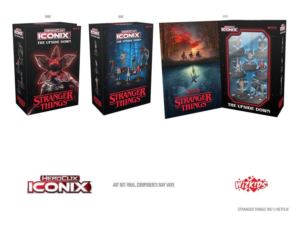 Vraťte se do Hawkins! Znovu prožijte kouzlo a dobrodružství první série Stranger Things s těmito úžasně detailními figurkami HeroClix. Když zmizí malý chlapec, malé město odhalí tajemství spojené s tajnými experimenty, děsivými nadpřirozenými silami a jedna podivná malá holka. Sestavte tyto místní hrdiny, aby porazili nadpřirozené zlo jako součást vaší další hry HeroClix! Toto Iconix, které je navržené tak, aby vypadalo skvěle na jakékoliv polici jako součást jakékoliv sbírky HeroClix nebo Stranger Things, vám také nabízí univerzální kusy, které můžete zaplnit do jakékoliv dobrodružné skupiny! Obsahuje: 7 figurk HeroClix a jejich karty - Eleven - Will - Mike - Dustin - Lucas - Hopper - Demogorgon Kniha-Box se stylem okna.