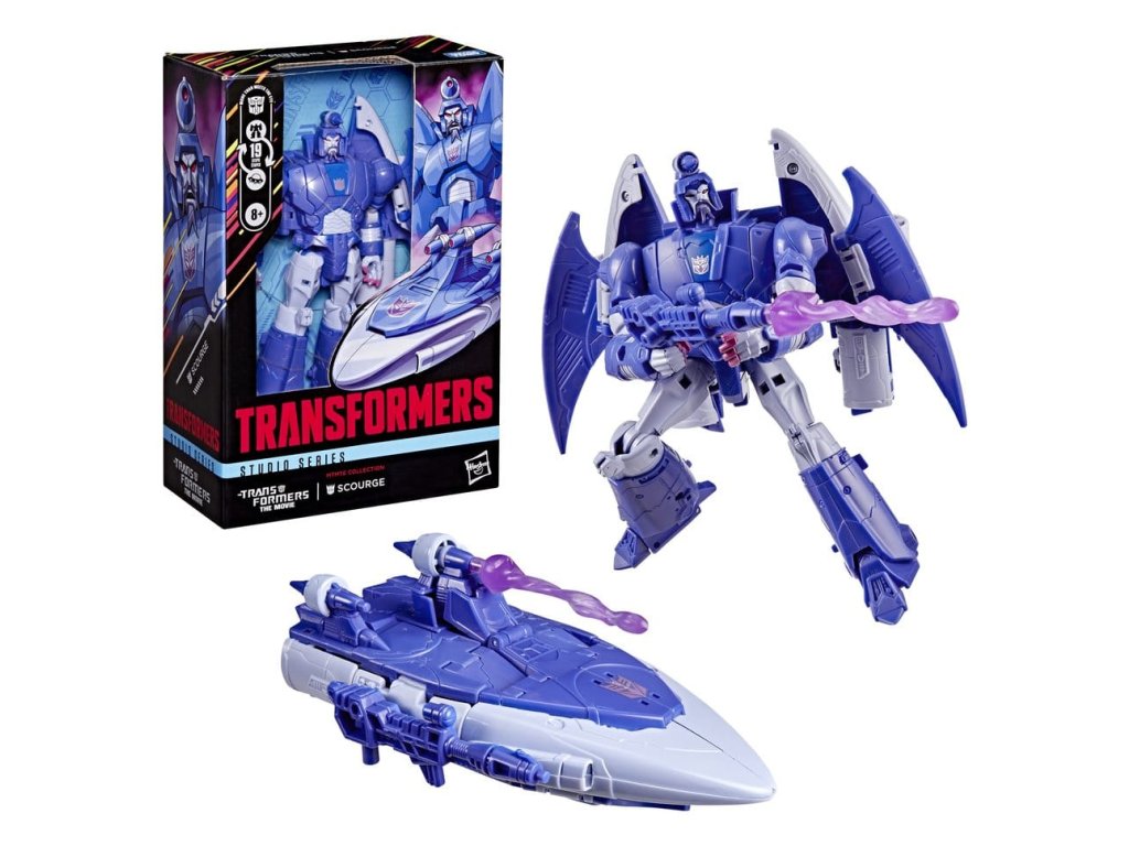 Oslavte 40. výročí filmu Transformers: The Movie s akční figurkou Scourge z kolekce Transformers Studio Series MTMTE. 6,5palcová (16,5 cm) figurka se přeměňuje z robotického na vesmírnou lodě v 19 krocích. S detaily inspirovanými filmem, složitou posedatelností a připevnitelnými doplňky blasteru a výbuchového efektu se tato figurka Scourge stává skvělým doplňkem jakékoliv sbírky. Hledejte další sběratelské hračky Transformers (prodávají se zvlášť, dle dostupnosti) s oblíbenými postavami jako Optimus Prime, Bumblebee, Megatron a další, abyste vytvořili sestavu, která je — Více než oko vidí.