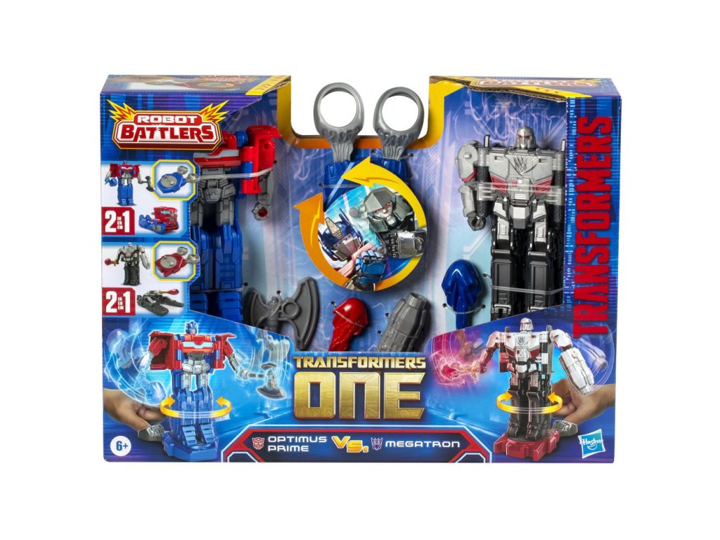 Akční bojové figurky cca 10 cm založené na základě ikonických filmových postav z nejnovějšího filmu Transformers. Balení obsahuje 2 figurky, příslušenství ke zbraním a základnu. Figurky se vyznačují úderem a rotací.