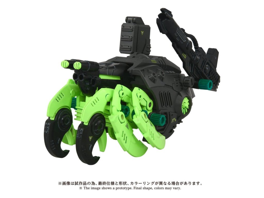 POKROČILÁ série pohyblivých stavebnic Zi ZOIDS - Představuje krok směrem k další evoluci, vývoj zdravého rozumu. Na základě témat stanovených pro každého ZOIDSe tato špičková značka ztělesňuje ultimátní formu pohyblivé stavebnice, která zahrnuje "rekonstrukci", "zdokonalení" a broušení."Tato stavebnice obsahuje fosforeskující díly, které svítí v tmě na vybraných místech. Zadní část má otevírací/zavírací kryt, uvnitř je vytesán raketomet se 12 hlavněmi. Rakety fungují jako spínače, aktivují motorizované akce. Nově přidaný zadní paprskový kanón také disponuje motorizovanou akcí a boční ventilátory se otáčejí elektricky. Zbraně na různých částech lze manuálně transformovat do střeleckých pozic. Součástí je originální vojenská figurka v měřítku 1/72, která může sedět v kokpitu (figurka je neomalovaná). Přepnutím ovládání je možné pohyb dopředu a dozadu. Orientační datum vydání: říjen 2026