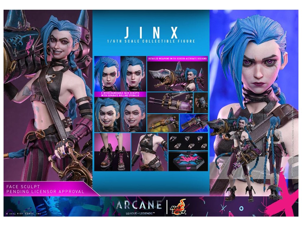 Jinx dorazila! Připravte se, protože nejenže přináší chaos do Piltoveru, ale také obrátí vzhůru nohama vaši sbírku Hot Toys ve formě figury v měřítku jedné šestiny. V očekávání druhé a poslední sezony Riot Games' oceněné animované série, Arcane, je Hot Toys nadšený, že může fanouškům představit sběratelskou figuru Jinx v měřítku 1/6.Tato 1/6 Jinx sběratelská figura je krásně vypracována na základě jejího vzhledu v druhé sérii Arcane a nabízí dvě výměnné tváře, které ukazují její výrazy s výjimečnou podobností, stejně jako nově vyvinuté tělo se soudržným designem od krku po paže z materiálu silikonu.Od ikonických modrých copánků a tetování s vzorem oblaků až po její napůl sežrané kalhoty z cirkusového stanu, každý detail Jinx byl pečlivě vytesán, aby byl co nejvěrnější. Nikdy není bez své široké škály zbraní a vynálezů, Jinx přichází se svým minigunem "Pow Pow", raketometem "Fishbones", granátem "Chomper", zap pistolemi, stejně jako s podstavcem ve stylu graffiti, který perfektně souzní s aurou, kterou přináší být jedním z nejhledanějších v Piltover.Dokončete dnes svoji sbírku Arcane s Hot Toys sběratelskou figurkou Jinx v měřítku 1/6!