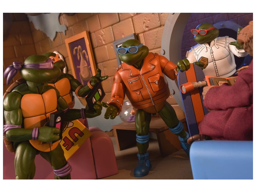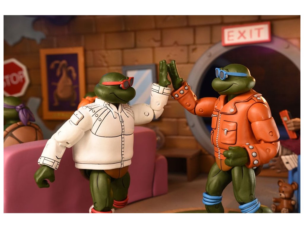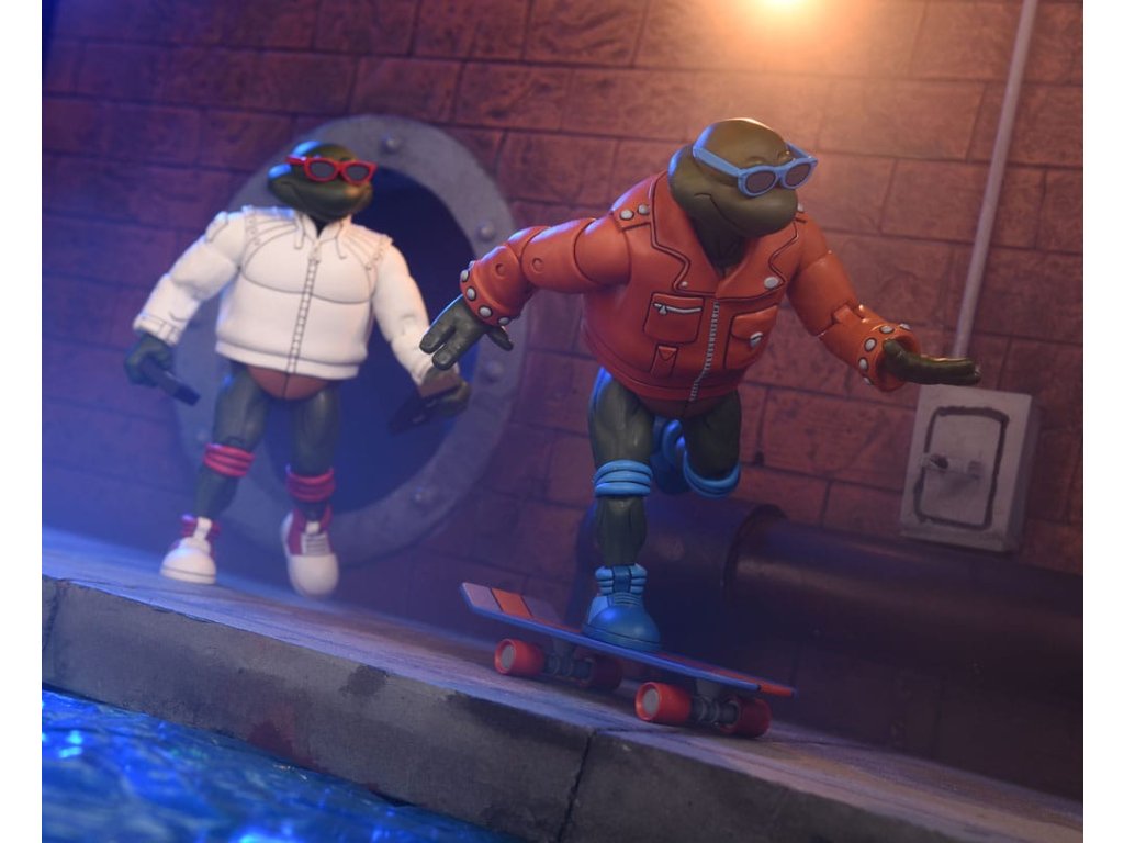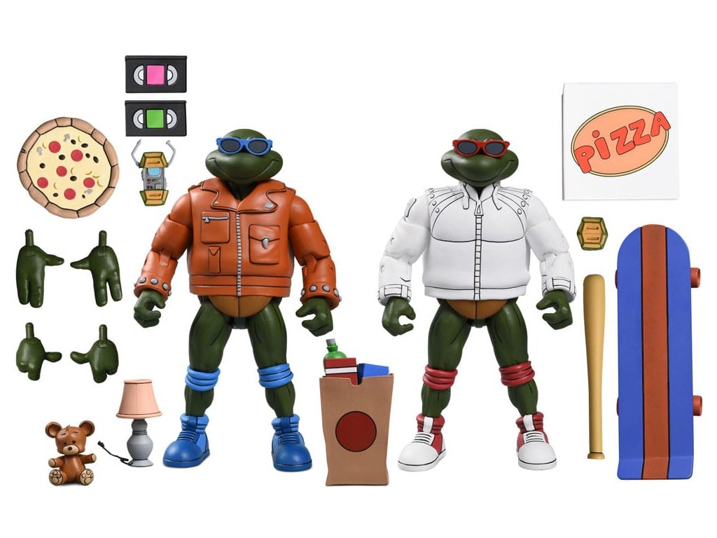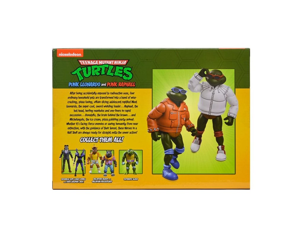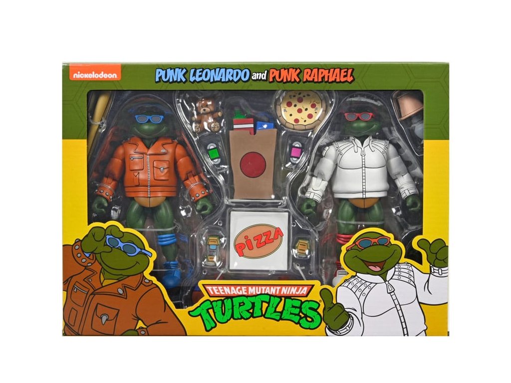 Na základě původního kresleného seriálu Želvy Ninja z 80. let! Pro sběratele, kteří chtějí mít kompletní sbírku, je firma NECA hrdá na prezentaci těchto nezbytných variant Leo a Raph ve svých punkových převlecích, jak byly krátce vidět v druhé epizodě 'Enter the Shredder'. Tyto akční figurky v měřítku 7 palců obsahují zbrusu nové, světově budovatelské doplňky jako pizza, nákupní taška, lampa, plyšový medvídek, VHS kazety a další! Prezentovány v sběratelsky přívětivém balení s průhledným okénkem.