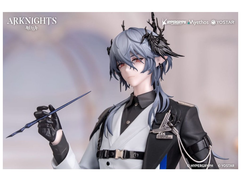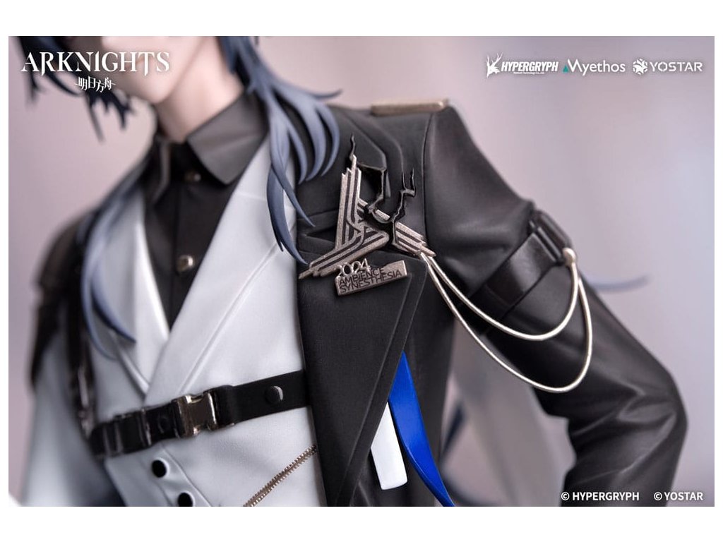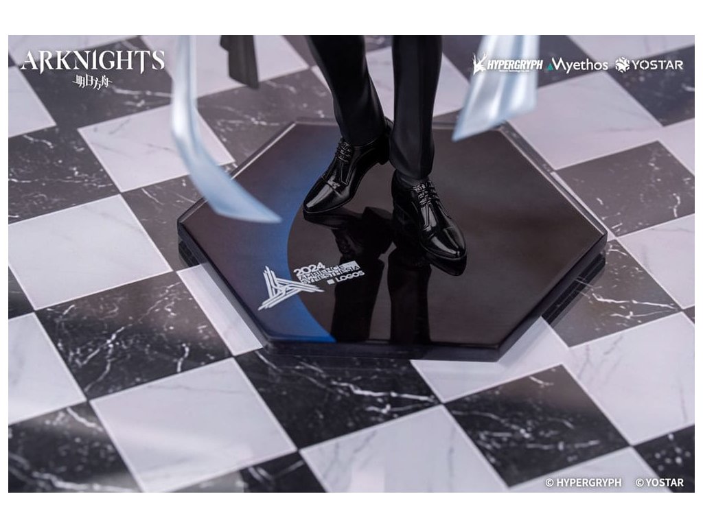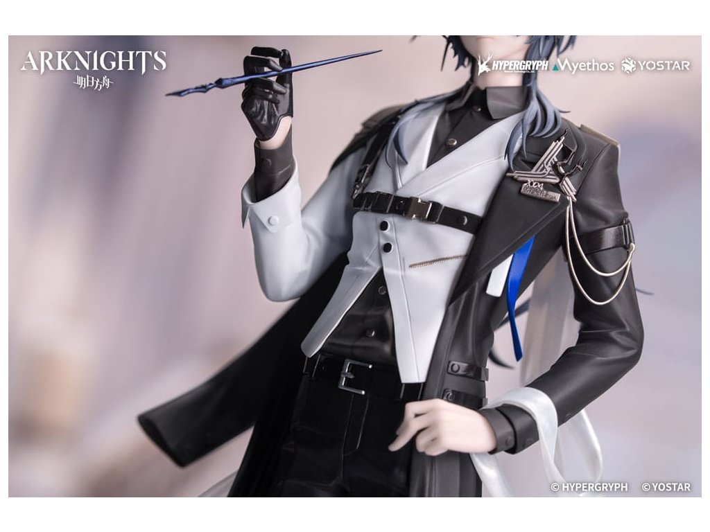 Od velmi oblíbené mobilní hry Arknights přichází nová figura měřítku 1/8 série Dárek+ Logos: Cesta hudby VER.! Logos, elitní operátor Rhode Islandu, je oděn do dlouhého trenčkotu s proudící siluetou. Bílý oblek pod tím je dokonale ušit, aby zdůraznil jeho vzpřímené držení těla. Kovové přezky na jeho hrudi dodávají jeho oděvu vytříbený dotek. Modro-bílé stužky šikmo obepínají jeho zápěstí. Jeho pravá ruka, oděná do černých kožených rukavic, pevně svírá kostěné pero, jako by chtěla rekonstruovat rytmické jádro pódia pomocí tajemných zaklínadel. Prameny stříbrošedých vlasů stékají podél jeho krku a jeho ledový pohled vybízí Doktora, aby se k němu přidal na tomto uměleckém hostině vytvořeném racionalitou. V tuto chvíli, s kostěným perem jako jeho kůzlem, ať se tento koncert stane nesmrtelnou souřadnicí vaší sbírky.