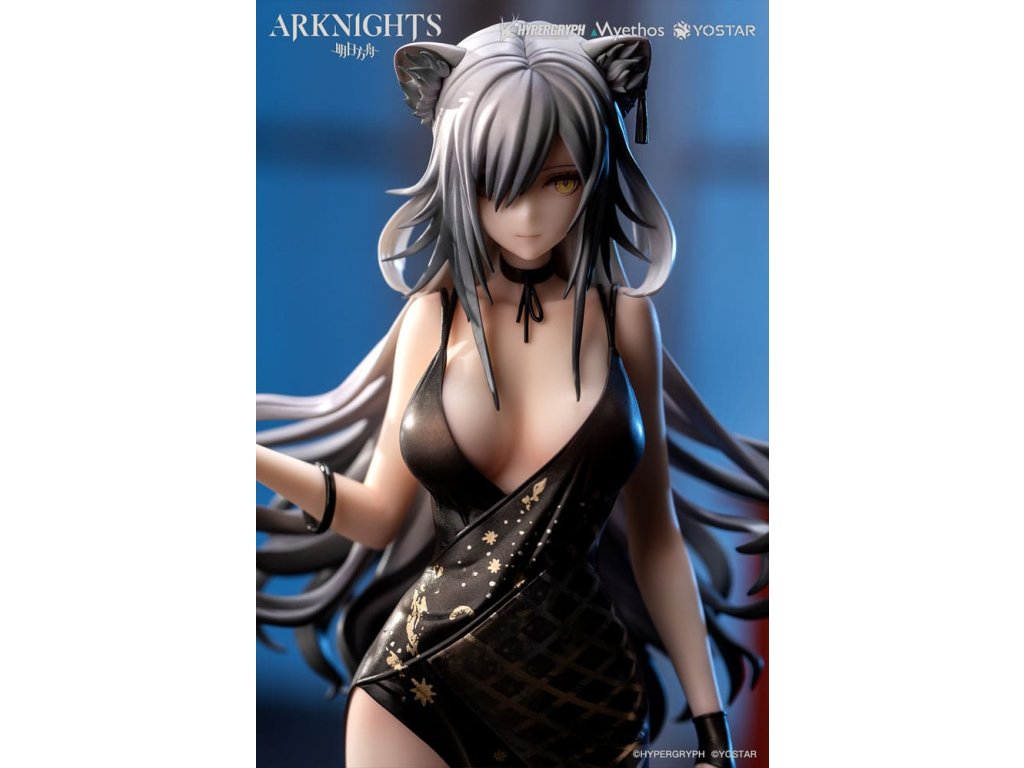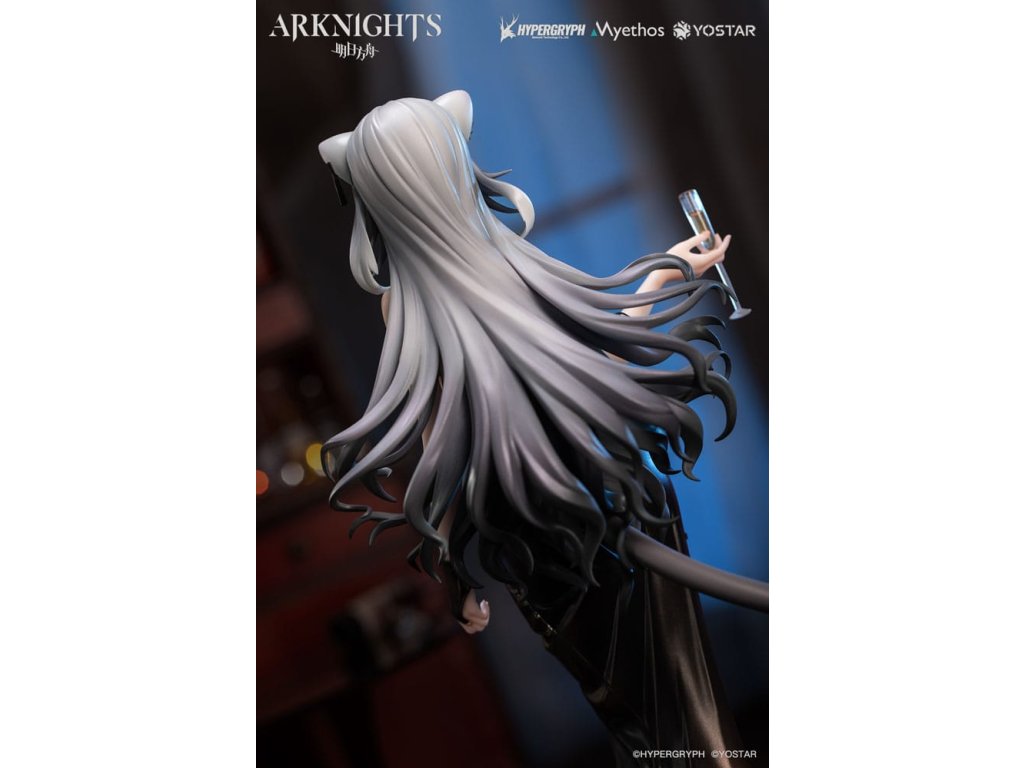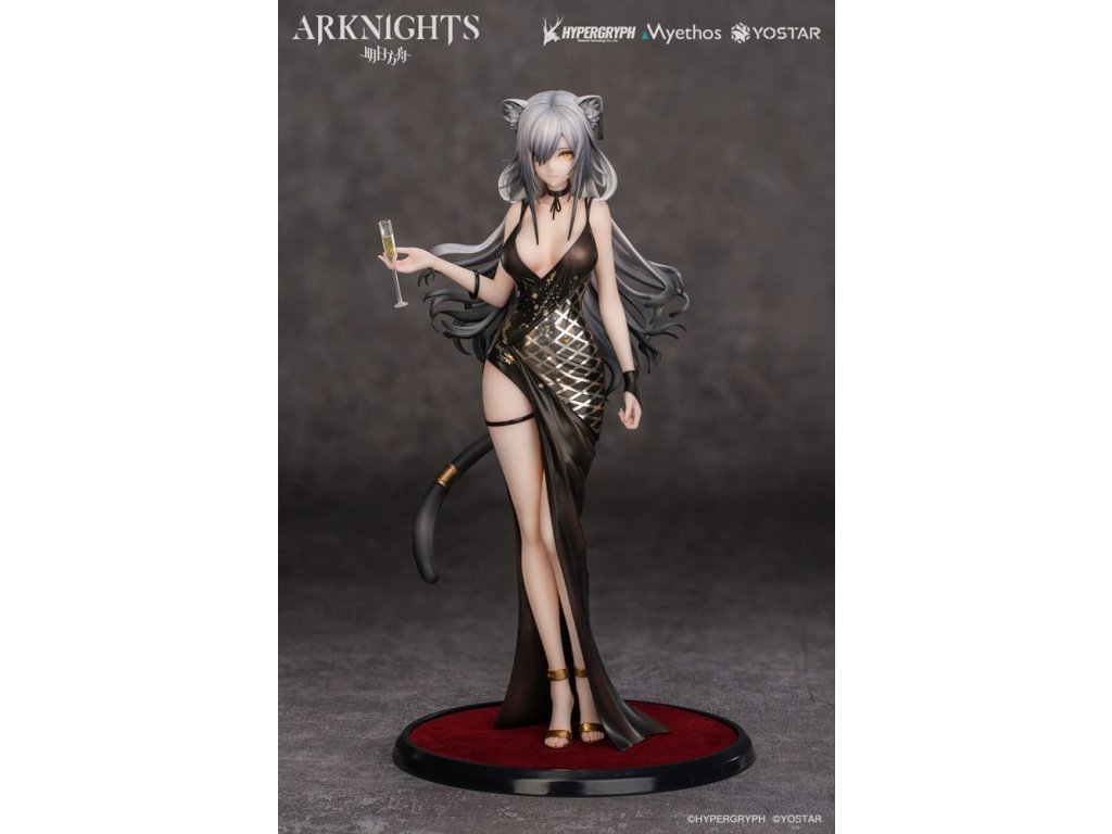 Ze velmi populární mobilní hry Arknights se Schwarz objevuje jako figurka v měřítku 1/7, založená na formálním oděvu z ilustrace k prvnímu výročí. Schwarz nosí perličkami zdobené dlouhé šaty až na zem; tmavá látka je ozdobena zlatými květinovými motivy jako hvězdy v noci a překrytá křížkovanou sítí z tylu. V pravé ruce drží sklenku šampaňského, tekutina ve sklenici se při pohybu zápěstí jemně houpá a vydává vůni šampaňského; její tichý pohled je zároveň elegantním pozváním i jemným varováním lovce. Pod vysokým rozparkem sukně je štíhlá pravá noha objata černým koženým páskem kolem stehna, který navazuje na obojek kolem krku. Štíhlé zlaté boty na vysokém podpatku s kotníkovými kroužky vykreslují linie a skrývají ostrost, krok za krokem. Zaměřovač odstřelovačky je nyní kalibrován a čeká na Doktora, aby navždy uchoval tuto smrtící eleganci. Bonus: akrylový přívěsek.Doplňkové parametry