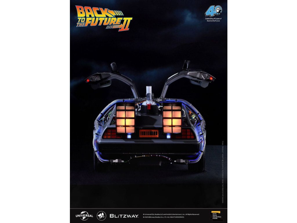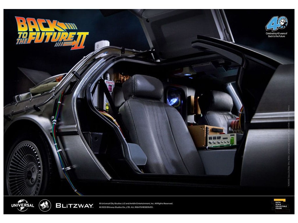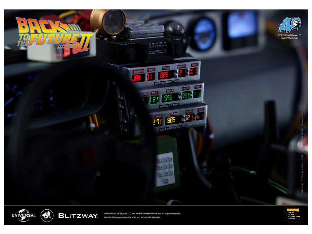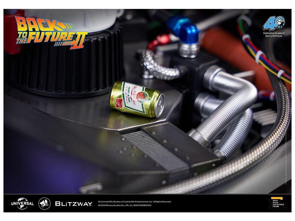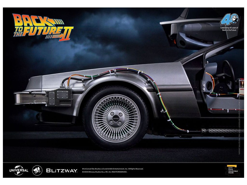 Klasický sci-fi film z roku 1985 „Návrat do budoucnosti“ mistrovsky kombinuje okouzlující příběh o cestování časem s pečlivě vytvořenými detaily, což vede k filmovému mistrovskému dílu, které je dodnes oslavováno. Mimo své příběhové geniality si film vydobyl své místo v historii tím, že inspiroval trvalou lásku k ikonickým produktům, které se v něm objevují, jako je například Nike a Pepsi. „Návrat byl pouze začátek“ - Návrat do budoucnosti II. První automobilový projekt BLITZWAY z roku 2025 představuje ikonický „časový stroj“ z Návratu do budoucnosti II, který oslavuje 40. výročí tohoto legendárního filmu. Tato novinka představuje detaily „Časového stroje“ v poměru 1/6, zachycuje každý prvek přesně tak, jak byl vidět na obrazovce. Prezentuje bezkonkurenční technologickou odbornost a přesné umělecké schopnosti BLITZWAY, které jsou ještě více vylepšeny integrovanými zvukovými funkcemi. BLITZWAY s 8 klíčovými funkcemi pozvá fanoušky, aby se znovu ponořili do vzrušení z Návratu do budoucnosti II, zachytává nostalgii a zázrak časového stroje, jako by procestoval 40 let, aby se před vámi objevil dnes. 1. Automatické dveře a okna Pomocí přiloženého magnetu aktivujte magnetické senzory ve dveřní rukojeti, které umožňují automatické otevření a zavření ikonických křídlových dveří stroje. Navíc vestavěné magnetické senzory v oknech umožňují hladký a realistický pohyb nahoru a dolů. 2. Zvuk startu motoru, zvuk blinkru a LED světla Jako skutečné vozidlo vydává motor zvuk startu a blinkry lze aktivovat pomocí indikátoru vedle volantu. Tato funkce nezahrnuje pouze LED osvětlení, ale také zahrnuje autentické zvukové efekty. 3. LED brzdová světla Když se stlačí brzdový pedál, zadní brzdová světla se rozsvítí, stejně jako u skutečného vozidla. 4. Motorizovaná LED kola S využitím magnetických senzorů zabudovaných do základny se všechna čtyři kola automaticky nakloní vodorovně, čímž se replikuje ikonický vznášedlý režim časového stroje. Efekt je dále zvýrazněn LED osvětlením. 5. Řízení předního kola Otočení volantu řídí pohyb předních kol doleva a doprava. 6. Modré vnější LED a spodní osvětlení Pomocí tlačítka umístěného pod reaktorem Mr. Fusion můžete aktivovat modrá LED světla na exteriéru, což replikuje ikonické světelné efekty filmu. Navíc, když je umístěn na základnu, spodní LED osvětlení dodává hloubku a realismus, odhaluje detaily skryté uvnitř produktu. 7. Detaily interiéru a zobrazení kabeláže Interiér časového stroje je vytvořen tak, aby odpovídal on-screen verzi, představuje zobrazení časových obvodů, Flux Capacitor a další komponenty vybavené LED. Každý detail, včetně řadicí páky, skutečných kožených sedadel a složité kabeláže, jak uvnitř, tak vně vozidla. 8. Základna Zakázkově navržená základna představuje elegantní, moderní obrys, který nabízí lepší stabilitu a rozměrnost, aby dokonale prezentoval levitující efekt časového stroje. Kromě těchto 8 klíčových funkcí objevte řemeslné dovednosti a špičkovou technologii, které oživili umělci BLITZWAY. Připravte se na zážitek z nezmaru BLITZWAY's Návrat do budoucnosti II 'Časový stroj'! Rozměry: 35 x 74 x 36 cm