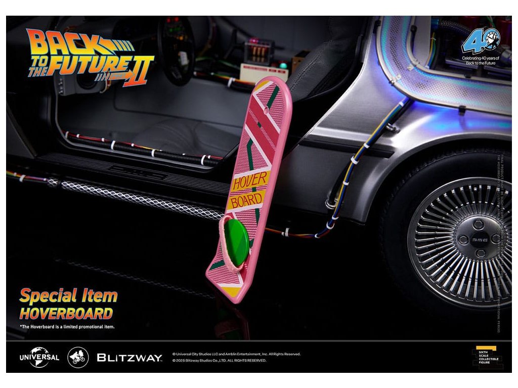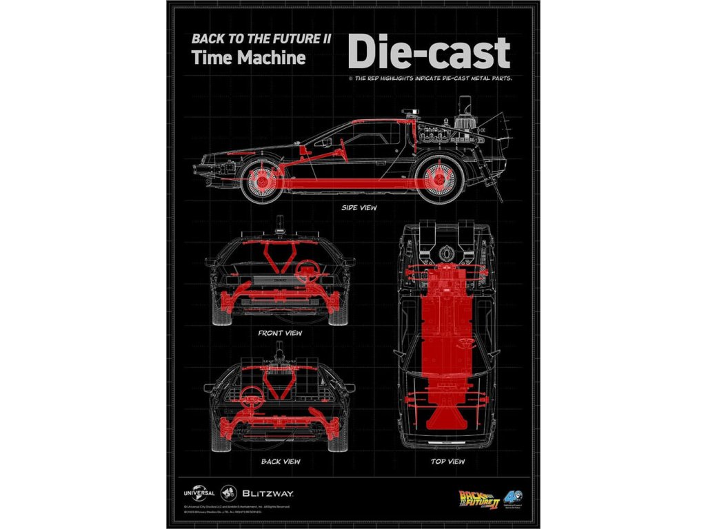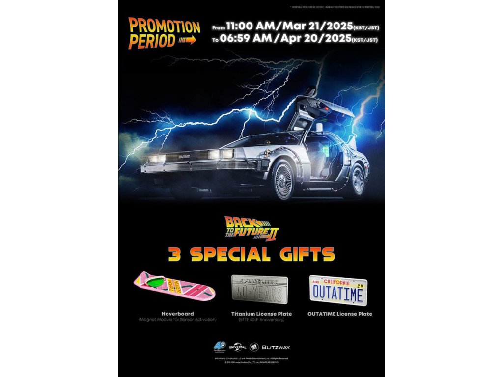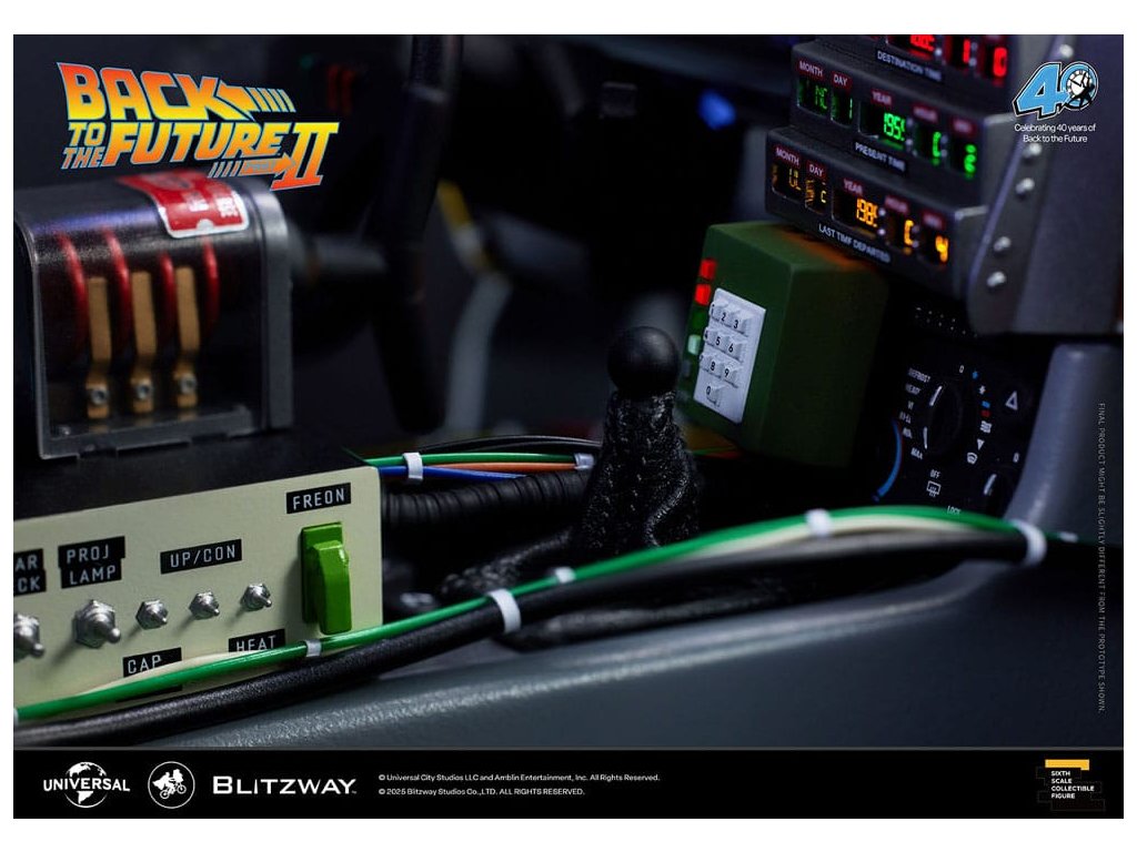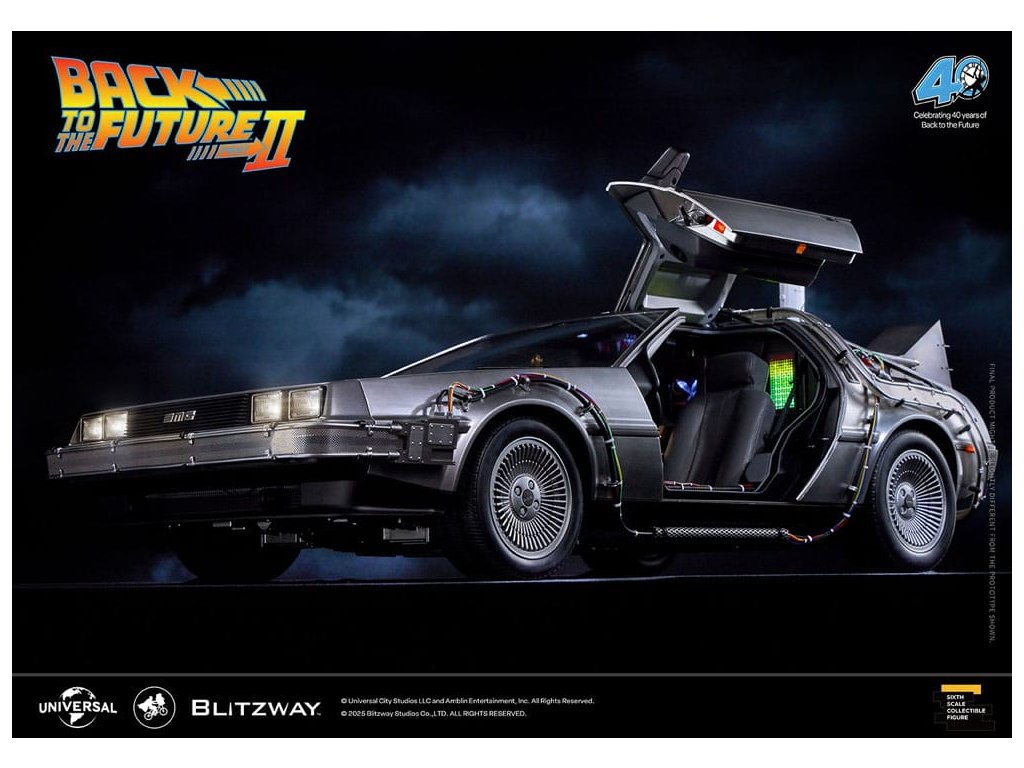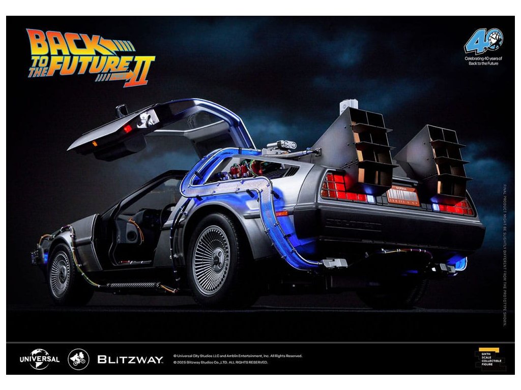 Klasický sci-fi film z roku 1985 „Návrat do budoucnosti“ mistrovsky kombinuje okouzlující příběh o cestování časem s pečlivě vytvořenými detaily, což vede k filmovému mistrovskému dílu, které je dodnes oslavováno. Mimo své příběhové geniality si film vydobyl své místo v historii tím, že inspiroval trvalou lásku k ikonickým produktům, které se v něm objevují, jako je například Nike a Pepsi. „Návrat byl pouze začátek“ - Návrat do budoucnosti II. První automobilový projekt BLITZWAY z roku 2025 představuje ikonický „časový stroj“ z Návratu do budoucnosti II, který oslavuje 40. výročí tohoto legendárního filmu. Tato novinka představuje detaily „Časového stroje“ v poměru 1/6, zachycuje každý prvek přesně tak, jak byl vidět na obrazovce. Prezentuje bezkonkurenční technologickou odbornost a přesné umělecké schopnosti BLITZWAY, které jsou ještě více vylepšeny integrovanými zvukovými funkcemi. BLITZWAY s 8 klíčovými funkcemi pozvá fanoušky, aby se znovu ponořili do vzrušení z Návratu do budoucnosti II, zachytává nostalgii a zázrak časového stroje, jako by procestoval 40 let, aby se před vámi objevil dnes. 1. Automatické dveře a okna Pomocí přiloženého magnetu aktivujte magnetické senzory ve dveřní rukojeti, které umožňují automatické otevření a zavření ikonických křídlových dveří stroje. Navíc vestavěné magnetické senzory v oknech umožňují hladký a realistický pohyb nahoru a dolů. 2. Zvuk startu motoru, zvuk blinkru a LED světla Jako skutečné vozidlo vydává motor zvuk startu a blinkry lze aktivovat pomocí indikátoru vedle volantu. Tato funkce nezahrnuje pouze LED osvětlení, ale také zahrnuje autentické zvukové efekty. 3. LED brzdová světla Když se stlačí brzdový pedál, zadní brzdová světla se rozsvítí, stejně jako u skutečného vozidla. 4. Motorizovaná LED kola S využitím magnetických senzorů zabudovaných do základny se všechna čtyři kola automaticky nakloní vodorovně, čímž se replikuje ikonický vznášedlý režim časového stroje. Efekt je dále zvýrazněn LED osvětlením. 5. Řízení předního kola Otočení volantu řídí pohyb předních kol doleva a doprava. 6. Modré vnější LED a spodní osvětlení Pomocí tlačítka umístěného pod reaktorem Mr. Fusion můžete aktivovat modrá LED světla na exteriéru, což replikuje ikonické světelné efekty filmu. Navíc, když je umístěn na základnu, spodní LED osvětlení dodává hloubku a realismus, odhaluje detaily skryté uvnitř produktu. 7. Detaily interiéru a zobrazení kabeláže Interiér časového stroje je vytvořen tak, aby odpovídal on-screen verzi, představuje zobrazení časových obvodů, Flux Capacitor a další komponenty vybavené LED. Každý detail, včetně řadicí páky, skutečných kožených sedadel a složité kabeláže, jak uvnitř, tak vně vozidla. 8. Základna Zakázkově navržená základna představuje elegantní, moderní obrys, který nabízí lepší stabilitu a rozměrnost, aby dokonale prezentoval levitující efekt časového stroje. Kromě těchto 8 klíčových funkcí objevte řemeslné dovednosti a špičkovou technologii, které oživili umělci BLITZWAY. Připravte se na zážitek z nezmaru BLITZWAY's Návrat do budoucnosti II 'Časový stroj'! Rozměry: 35 x 74 x 36 cm