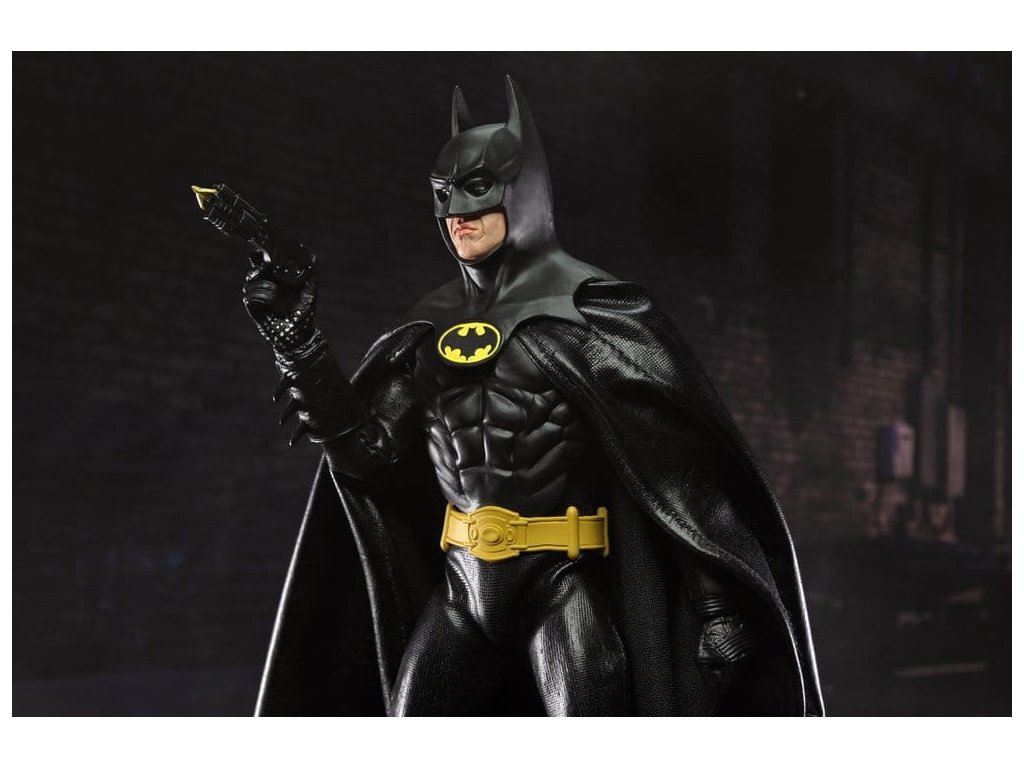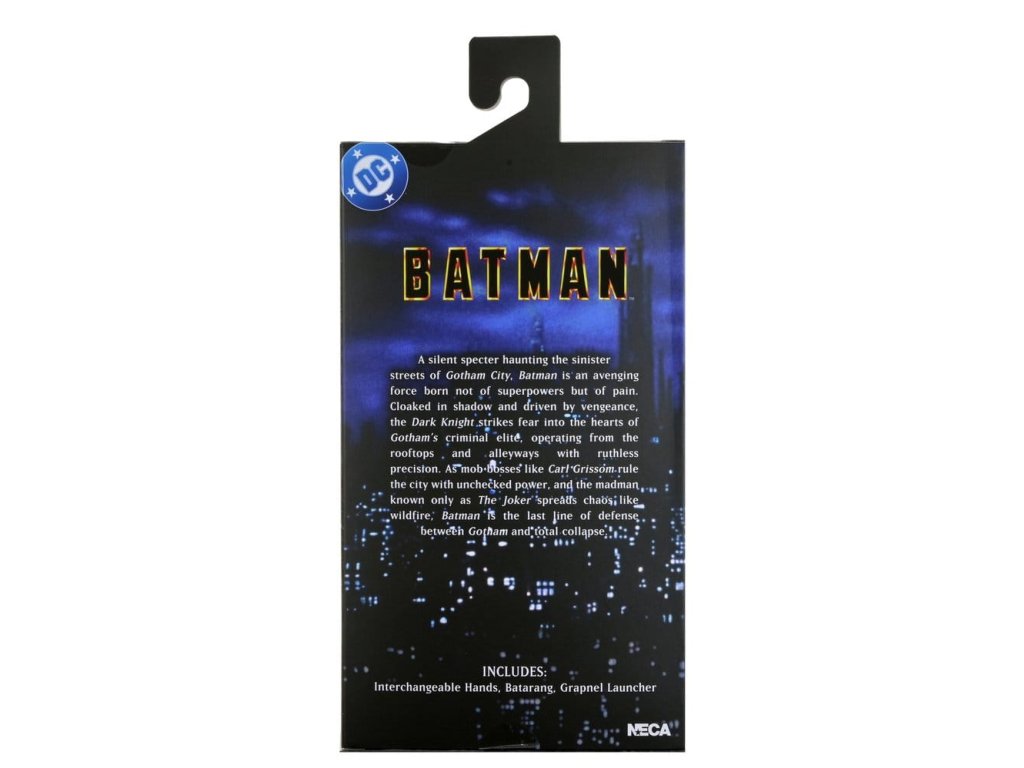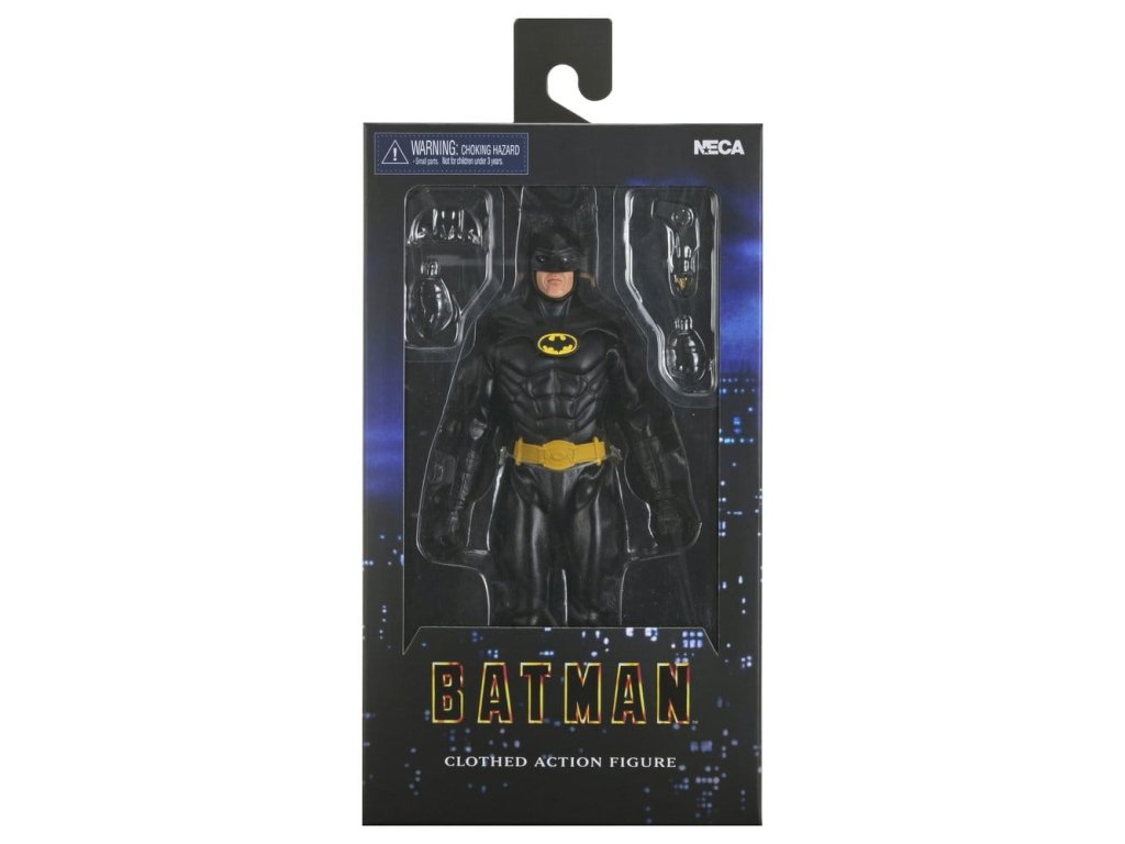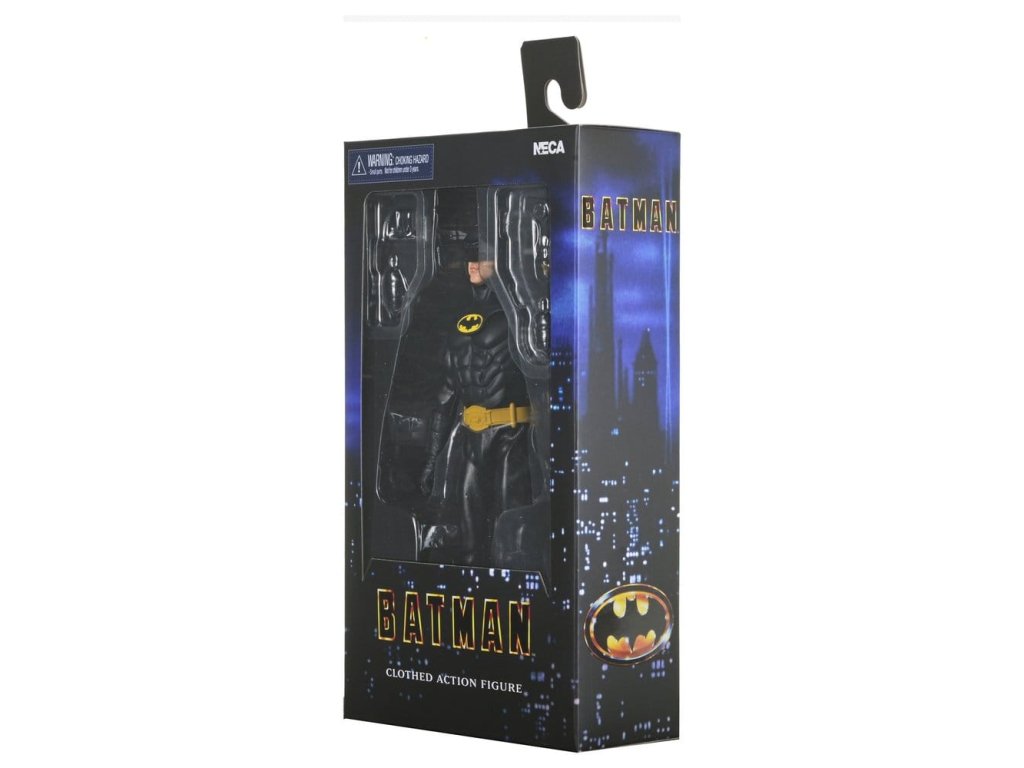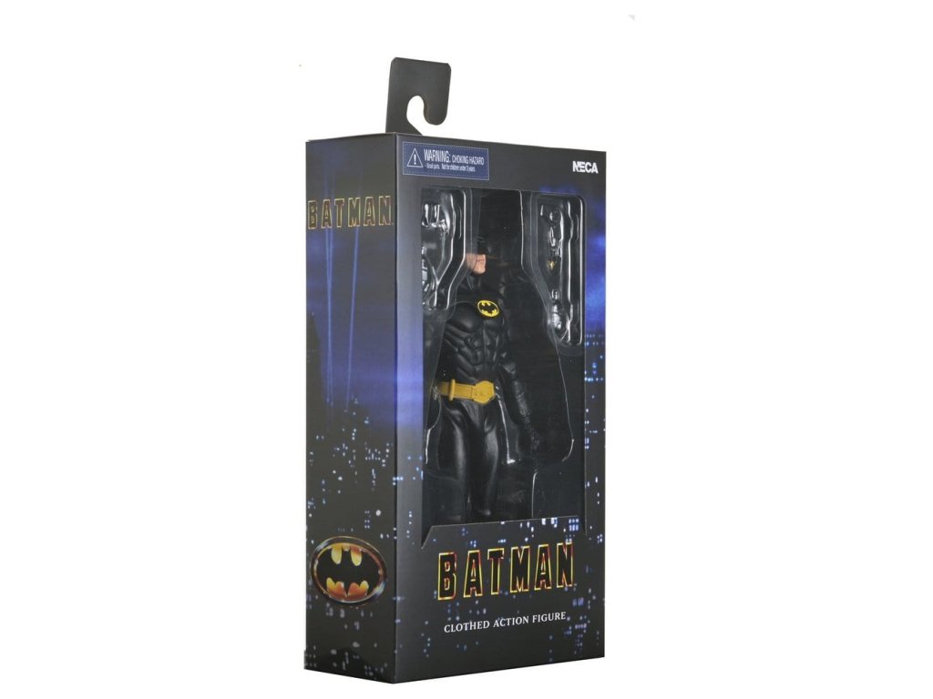 Od ikonického filmu Tima Burtona z roku 1989, který definoval Batmana pro moderní generaci, představuje NECA tuto oblečenou akční figurku Batmana s podobiznou Michaela Keatona. Batman, zahalený ve stínech a vedenený pomstou, nahání strach do srdcí kriminální elity Gotham City. Bohatý Bruce Wayne, kdysi vyděšený netopýry a psychicky zraněný z vraždy svých rodičů, převádí svůj strach do své alterego - Batmana a nasazuje plášť a kuklu, aby chránil ulice Gothamu před obyčejnými zločinci a excentrickými padouchy. Zatímco mafiánské bossovi, jako je Carl Grissom, vládnou městu bez kontroly a šílenec známý jen jako Joker šíří chaos jako požár, Batman je poslední obranná linie mezi Gothamem a totálním zhroucením. Tato figurka Batmana, která vzdává hold starým hračkám, nosí šité oblečení, včetně pohyblivého pláště s drátem. Příslušenství zahrnuje vyměnitelné ruce a ikonické batmanovské vychytávky, jako je jeho Batarang a vrhač lana. Tato figurka v měřítku 8 palců je dodávána v okenní krabičce s přebalem.