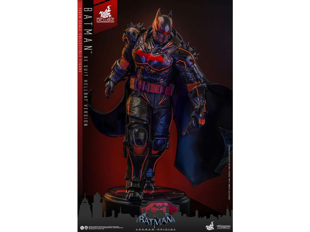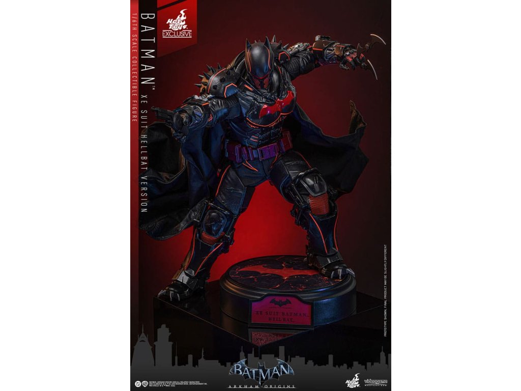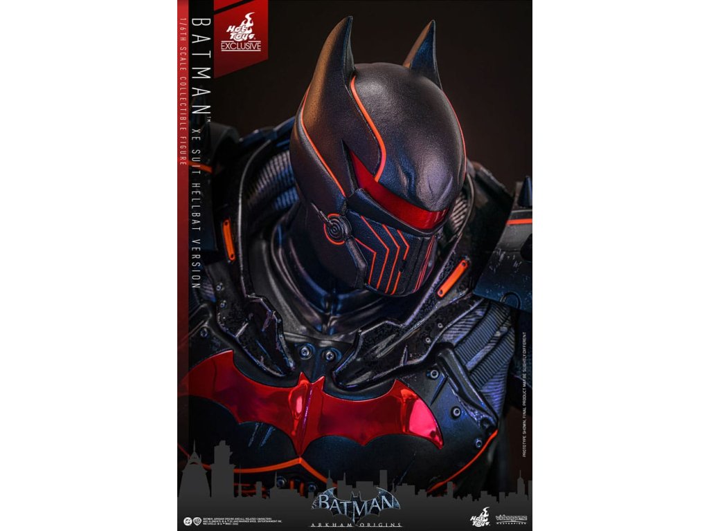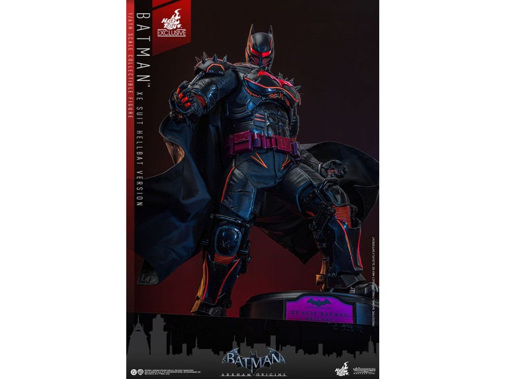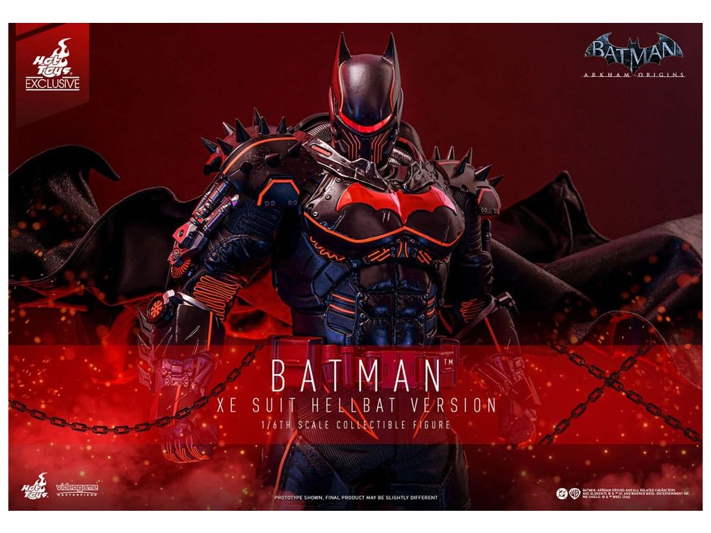 Ve příběhovém DLC 'Cold, Cold Heart' hry Batman: Arkham Origins obléká Batman Xtreme Environment (XE) Suit - teploměrem pancíř určený k čelbě proti ledové kryotechnologii Mr. Freeze. V DC Comics je Hellbat armor nebezpečný oblek vytvořen Batmanem s pomocí Justice League k čelění hrozbám, které překračují lidské limity. Tento oblek poskytuje mimořádnou sílu, let, projekci energie a schopnosti pláštění, které stojí Bruce drahé, protože jeho moc živí jeho vlastní životní sílu. Na oslavu dne Batmana představují Sideshow a Hot Toys sběratelskou figurku Batman (XE Suit Hellbat Version), odvážnou fúzi, která kombinuje ledovou rezistenci XE Suitu s devastující silou Hellbatu. Tato exkluzivní figurka je dostupná v omezeném nákladu 2000 kusů, výhradně na vybraných trzích. Figurka DC Comics je vybavena nově vyvinutou helmovou hlavou inspirovanou tvorbou Hellbatu. Stojí přibližně 33 cm vysoký, robustní obrázek má devět vyměnitelných rukou, včetně pěstí, rukou držících Batarang, otevřených gestikulačních rukou a ruku naslouchající telekomunikačnímu signálu pro pohlcující prvek pose. Kostým je těžce obrněná verze XE Suit s estetikou Hellbatu, včetně elektrolyzovaného červeného bat-symbolu, červeně vyvedených detailů se speciálně aplikovaným UV luminiscentním reflektivním efektem, plus odraném vzhledu. Oblek je doplněný ohebným drátem zapuštěným do černého pláště a výrazným červeným pomocným opaskem. Zbraně zahrnují Batmanův hák a dva Batarangy, vše prezentované na speciálně navrženém stojanu na figuru. Tato figura zachycuje vzácný okamžik, kdy se přežití setkává s téměř božskou silou, a skutečně ztělesňuje Batmana, který své lidstvo tlačí na hranice v hledání spravedlnosti, což je nezbytností pro sběratele Batmana! Limitovaná edice 2000 kusů.Doplňkové parametry