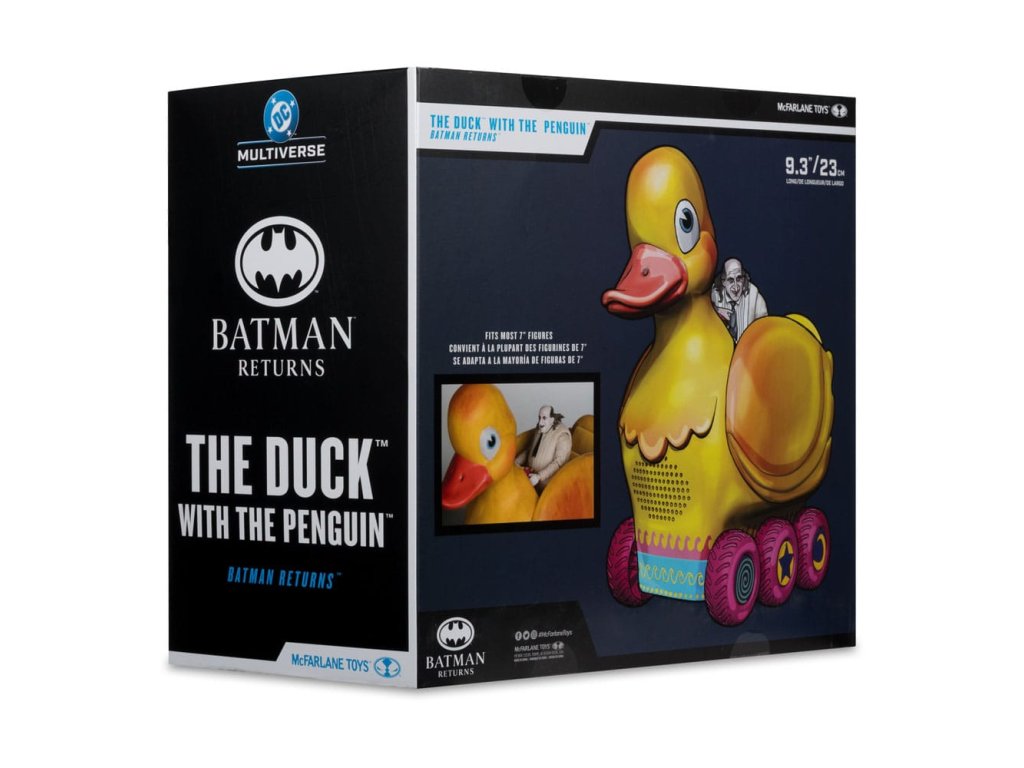 Připravte se na divokou jízdu s The Duck, nejvyšším vozidlem z podsvětí Gotham! Tento ikonický stroj přeměnil Penguin, aby mohl plout kalnými vodami a drsnými ulicemi nebezpečných oblastí Gothamu. Poháněný chytrým mozkem Oswald Cobblepot, The Duck je stejně hrozivý jako jeho majitel. Ať už klouže kanály nebo křižuje ulice Gothamu, tento mechanický monstrum je symbolem Penguinova neúnavného ambice. Součástí tohoto luxusního dvoupacku je také figura Penguin, která zachycuje záludný vzhled ikonického padoucha Gothamu. - Neuvěřitelně detailní 7" figurka a vozidlo na základě ikonického filmu BATMAN RETURNS z roku 1992 - Penguin se dokonale vejde do The Duck, což mu umožní ovládat jeho řízení a křižovat ulice Gothamu s otáčejícími se koly! - Balení obsahuje vozidlo The Duck a akční figurku The Penguin, základnu pro zobrazení figurky a sběratelskou uměleckou kartu - Figurka The Penguin je navržena s Ultratickou artikulací až s 22 pohyblivými částmi pro plný rozsah pózování a hry. Sbírejte všechny figurky MCFARLANE TOYS™ DC MULTIVERZUM™.