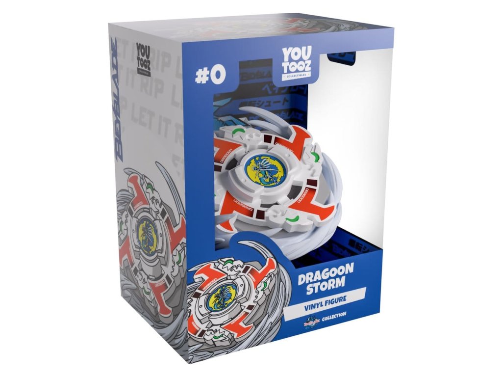 "Útok Bouře!"Připravte se na boj! Protože Yotuooz natáhl startovací šňůru a poslal Dragoon Storm do bitvy pro jeho debut! S výškou 8 cm a rychlostí otáčení, která způsobuje ničivý vichr, obklopující ho ostrým nárazem vzduchu, červené značky pokrývají ostré body jeho bílé útočné vrstvy, která je pevně upevněná na šedém disku, zatímco žlutý a modrý Bit Chip Dragoon Storm odpočívá uprostřed. Exteriér obalu ukazuje Dragoon Storm, jak se točí přes šedé a bílé pozadí. Zatímco interiér je pokrytý černými a modrými vodorovnými linkami, které napíše Beyblade, to pak pokračuje na ochranný obal, kde se linky stávají šedými a bílými a figurka je viditelná skrz velké průhledné okno na přední straně obalu. Tento sběratelský kousek se dodává v matném, reliéfním, ochranném vnějším obalu a zakázkově vyrobeném plastovém chrániči pro maximální ochranu při přepravě.O Beyblade: Beyblade je bojová točící se špička hračky a mediální franchise vytvořená japonskou hračkářskou společností Takara. S několika hračkami, anime sériemi, mangou a filmy od vydání prvního vrcholu v roce 1999 se Beyblade stal základním kamenem pop kultury, kde každý ví, co to znamená 'Roztoč to!'. Orientační datum vydání: srpen 2026