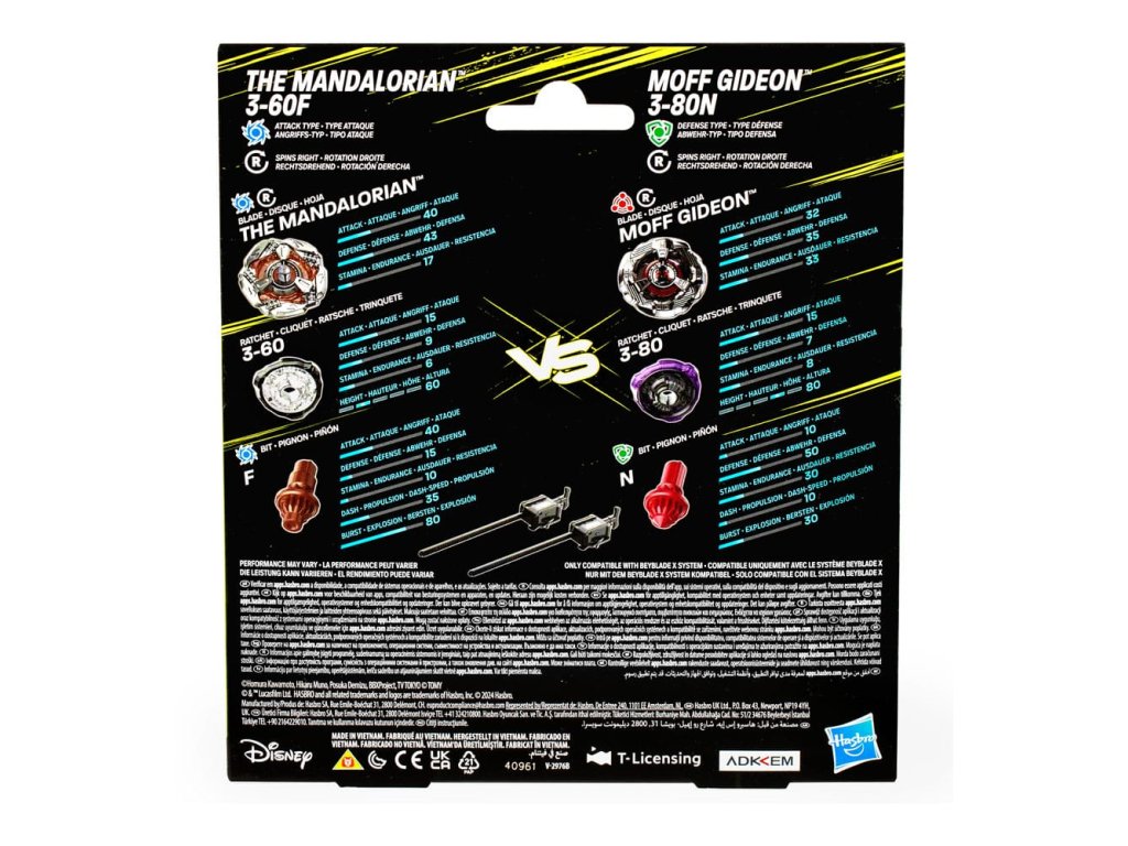 Beyblade X and Star Wars Collab The Mandalorian 3-60F vs. Moff Gideon 3-80N