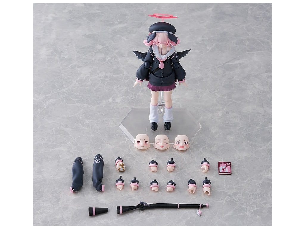 Z oblíbené hry 'Blue Archive' přichází figma Koharu Shimoe, studenta všeobecné Trinity školy, který patří do Klubu Pracovní Make-Up! Tvářové desky: - Ruměnková tvář - Kočičí oči - Plačící tvář - Usřídící tvář. Volitelné součásti: - Justice Black - Magazín - Svatá ruční granát - Další volitelné části pro různé pózy.