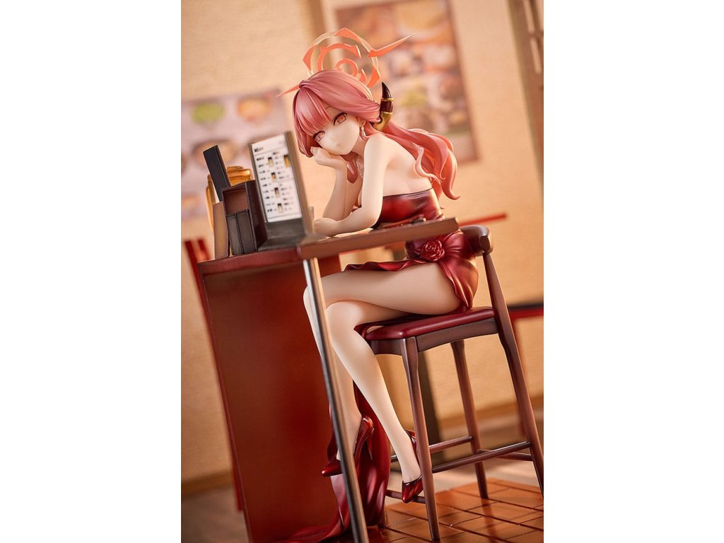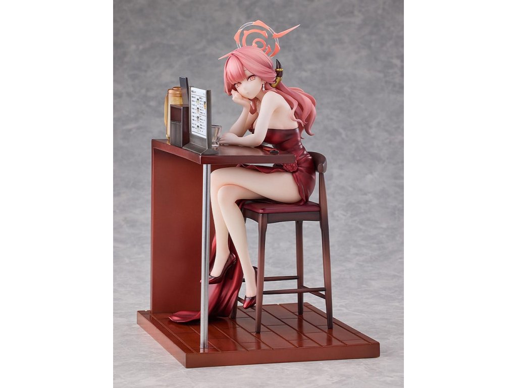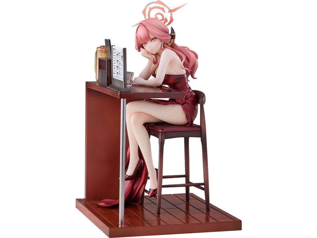 Z populární hry 'Blue Archive' přichází soška Aru v měřítku 1/7, prezidentky Handy Solver 68! Aru je oblečená do lesklých, hlubokých karmínových šatů s vysokým rozparem, vyzařujících svůdné kouzlo dámy. S původně řezaným podstavcem, připomínajícím sedátko u pultu, tato soška věrně zachycuje jemnou, teplou scénu Memorial Lobby, ve které Aru a Sensei tiše hovoří v restauraci Ramen. Detaily, jako je hladká textura šatů Aru a její kyvadlové náušnice, náhrdelník a červené podpatky, byly pečlivě realizovány. Dokonce i sklenice a další drobné předměty byly pečlivě znovu vytvořeny, zachovávají scénu v její původní podobě pro vaše potěšení. Součástí je také výměnná tvářní deska s úsměvem. Veselá, usmívající se Aru, která se těší na strávení času se Sensei, přidává k sošce další příjemný aspekt. Prosím, zvažte přidání této roztomilé podoby Aru do své sbírky! Orientační datum vydání: listopad 2026