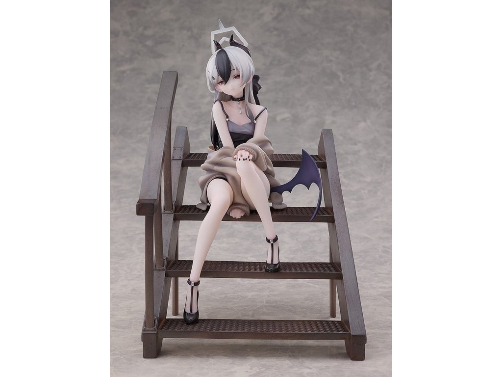 Z oblíbené hry "Blue Archive" přichází figura Kayoko v měřítku 1/7, členky týmu Handy Solver 68! Figura zobrazuje Kayoko s dlouhými monochromatickými vlasy svázanými černou stuhou a černo-šedými šaty na ramínka, které zdůrazňují její jemnou postavu. Jednoduchý, ale sofistikovaný oděv Kayoko podtrhuje její klidnou a sebejistou povahu. Speciální základna ve formě schodiště navozuje chvíli strávenou se Sensei v pamětní hale za západem slunce. Seda na vrcholu schodů s rukama na kolenou je figura založená na Kayoko v uvolněné póze. Detaily jako je její napůl nasazený svetr a jemné fialové křídlo jsou také zahrnuty. Její jemný výraz uchvátí každého, kdo na ni pohlédne, s náznakem hravosti. Pihy na její klíční kosti, náušnice, obojek a černé nehty byly všechny pečlivě převedeny do podoby figury. Její zralé kouzlo je zřejmé v každém detailu. Je také zahrnuta část obličeje se usměvavým výrazem pro jinou možnost zobrazení. Užijte si různé stránky Kayoko s využitím výměnné části obličeje. Tuto figuru Kayoko si určitě přidejte do své sbírky. Bonus: Kayoko (Šaty): Verze Pamětní haly. Kolekční karta * je součástí všech nákupů tohoto produktu. Orientační datum vydání: listopad 2026