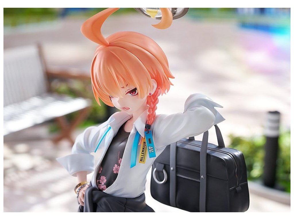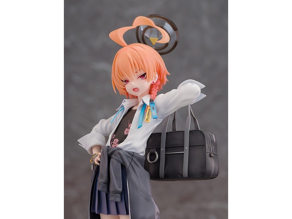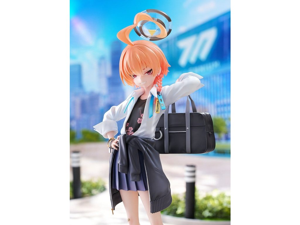 Z oblíbené hry 'Blue Archive' přichází figura měřící 1/7, Neru Mikamo, vůdkyně zpravodajské agentury Vědecké školy Milénia, C&C! Neru byla ztvárněna jako figura, která je oblečená do své školní uniformy, což je osvěžující změna oproti jejímu obvyklému džínovému kabátu a stylu služebné uniformy! Detaily jako její volný styl košile, plisované sukně a školní tašky přehozené přes rameno, stejně jako její povýšený výraz, byly věrně převedeny do života. Její tradiční účes byl také pečlivě znovu vytvořen, čímž zdůraznil její intenzivní, ale přitažlivý šarm. Outfit Neru, až po texturu a detaily jejích tenisek, doplňků a tašky, byly pečlivě přeloženy do podoby figurky, aby se zachoval její studentský kouzlo z původní ilustrace. Součástí balení je také vyměnitelná sebevědomá tvář pro jinou možnost zobrazení. Orientační datum vydání: únor 2027