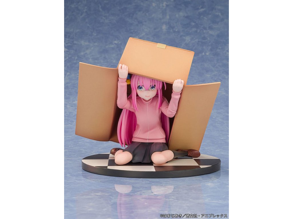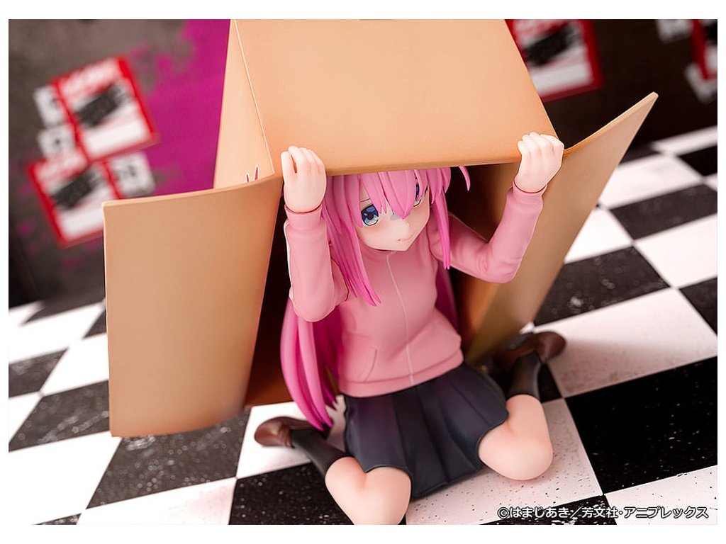 Z anime 'Bocchi the Rock!' přichází měřítková figurka Hitori Gotoh! Figurka představuje Hitori Gotoh, jak se skrývá v kartonové krabici. Charakteristický výraz Bocchi-chan byl pečlivě vytesán a detaily jako logo 'Zralé mango' byly věrně rekonstruovány! Určitě přidejte nervózního Hitori Gotoh do své sbírky! *Fotografie jsou produktu ve vývoji. Skutečný produkt se může lišit.*Specifikace produktu se mohou změnit bez předchozího oznámení. Děkujeme za pochopení.*Tento produkt nestojí sám. K zobrazení použijte přiložený stojan.*Tento produkt může být prodáván na akcích nebo na určitých místech.