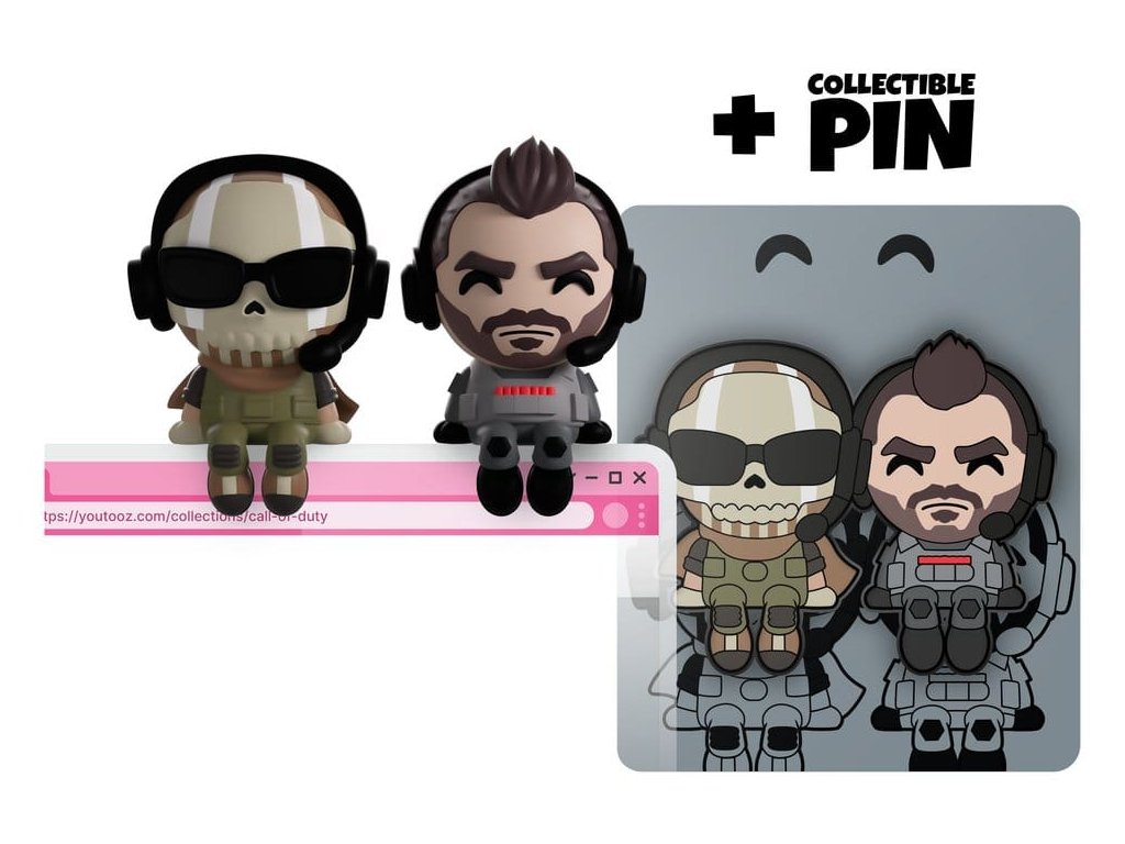 Zůstaňte klidní! Ghost a Soap jsou tady, aby byli nejlepším záložníkem, jakého jste si mohli přát s našimi novými Monitor Buddiez! Sedící na 6 a 6,5 cm vysoko, Ghost nosí černé sluneční brýle a odpovídající headset přes svou ikonickou lebku masku, zatímco bledé pruhy pokračují přes jeho bradu a je oblečen v hnědé plášti a vojenské zelené uniformě. Zatímco vedle něj, vážné mračení prosvítá skrz Soapovu hnědou bradu a černý headset obaluje jeho špičatý irokez, a on nosí šedý oděv pod svou taktickou vestou, která má v řadě červených patěran. Absolutně nejlepší společníci, ať už pracujete, likvidujete padouchy, nebo se jen tak potulujete, budou se vždy snažit být přímo ve vašem zorném poli, aby vám vykouzlili úsměv! Tyto Buddiez přicházejí v láskyplně navržené krabičce s vnitřkem pokrytým tmavou černou a šedou mapou, zatímco na vnějšku vidíme pár sedící na vrcholu počítačového monitoru, zatímco vzdušná mapa pokrývá pozadí a jejich figurky lze vidět skrze velké průhledné okno na jeho přední straně.O Call of Duty:Call of Duty je série videoher First Person Shooter trvající dvě desetiletí a pokrývající několik válek, jak skutečných, tak fiktivních, kde převezmete roli více vojáků, abyste se probojovali přes složité a přitažlivé příběhy, nebo jen stříleli své přátele v divokých multiplayerových death matches.