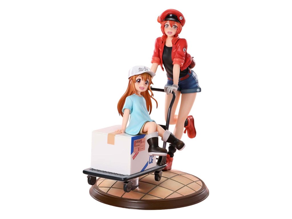 Nesoucí kyslík do buněk ve všech koutech těla, "Červená krevní buňka" a zacelující rány a zastavující krvácení, "Krevní destička". Ze seriálu "Bunky v práci!" přichází živá postavička znázorňující tento pracovitý pár! Při plnění svých specifických rolí spolupracuje červená krevní buňka a krevní destička k udržení míru v těle. Jejich okouzlující a dojemné každodenní životy jsou zachyceny v této dynamické a detailní soše. Od štíhlých proporcí ukazující červenou bundu a džínové šortky, až po vlající hnědé vlasy a rozverně pružící nohet na vozíku, každý pohyb a detail byl pečlivě zpracován. Živé barvy a jemné sochařství oživují podstatu seriálu. Od jejich jasných, vpřed se dívajících výrazů po krabici stlačeného kyslíku, každý element vypráví příběh z útrob těla. "Velka sestra, červená krevní buňka!" "Malá krevní destička!" Jejich veselé hlasy jako by ozývaly v této dojemné scéně. Nechte tuto rozkošnou dvojici přinést moment štěstí i vám! Orientační datum vydání: březen 2027