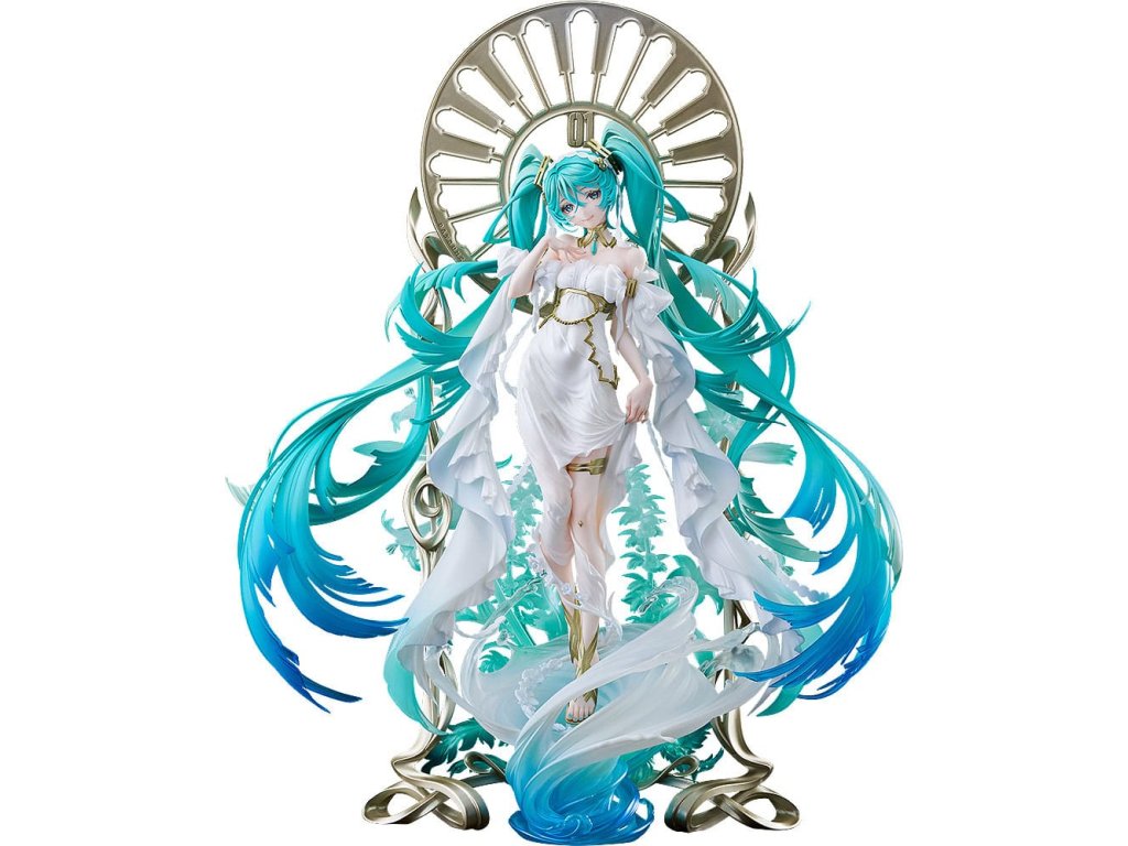 Hatsune Miku, Muza Tvorby.Z "Série postav s vokálem 01: Hatsune Miku" přichází figura Hatsune Miku v měřítku 1/7, jak ji navrhl ilustrátor Yoneyama Mai!Hatsune Miku je oblečena jako bohyně a je spojena s motivy přírody, jako jsou rostliny - to vše bylo exkluzivně vytesáno, aby zachovalo atmosféru původní ilustrace.Její dvojité ocasní prameny, které připomínají křídla, využívají průhledné části a na čistě bílý oděv byla použita perleťová barva pro elegantní dokončení.Určitě přidejte do své sbírky tu dobrosrdečně se usmívající Miku!