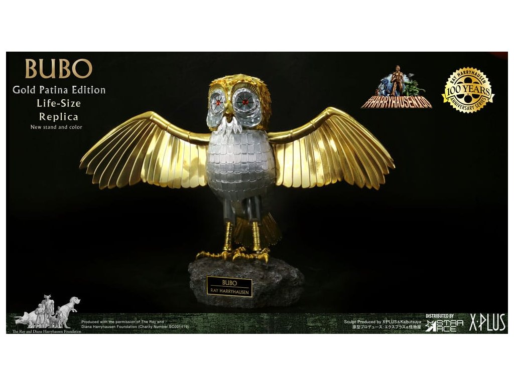 Ze světa Raye Harryhausena a klasického filmu Konflikt titánů přichází detailní reprodukce mechanické sovy, kterou vytvořili bohové. Star Ace představuje tuto životní velikosti Bubo, sběratelský předmět navržený tak, aby zachytil vzhled původního rekvizity použitého ve filmu. Tato replika měří 30 cm na výšku, což odpovídá měřítku originálu. Hlava a nohy jsou artikulované a zahrnuje dvě páry vyměnitelných křídel: jeden pár složený pro odpočinkovou polohu a jeden pár s otevřenými křídly pro aktivnější zobrazení. Figurka má simulovanou zlatou patinovou barvu, která odráží stáří originální rekvizity. Je vyrobena z vinylu a je dodávána s polyresinovou základnou, která zahrnuje jmennou tabulku. Souprava obsahuje figurku Bubo, oba páry křídel a zobrazovací základnu. Tento oficiálně licencovaný produkt je významnou položkou pro sběratele filmových památek a klasické fantasy. Orientační datum vydání: srpen 2026
