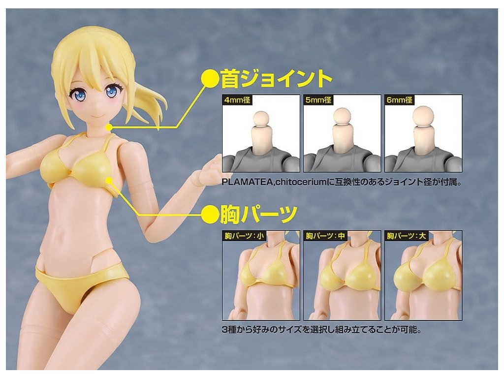 Jednoduchá a bezproblémová montáž! Představujeme artikulovaný plastový model těla bishojo, Muse Body: Ichika - verze Bikini pro sérii PLAMATEA! - Model je přibližně 145mm vysoký. Spoje modelu jsou plně artikulované. Hlavní tělo obsahuje přibližně 70 dílů. - Balení obsahuje předmalovaný tvářový plát se širokým úsměvem a sadu dvou tvářových plátů (se širokým úsměvem x 1, neutrální tvář x 1), které lze upravit pomocí nášivek na oči. - Model je dodáván se čtyřmi typy rukou: uzavřené ruce, otevřené ruce, ruce ve znaku míru a úchopové ruce. Díry pro úchopové ruce mají průměr 3mm, což modelu umožňuje držet předměty, které jsou kompatibilní s velikostí díry. - Balení obsahuje tři typy krčních dílů s různými průměry kulových kloubů (4mm, 5mm a 6mm). Hlavové díly dříve vydaných produktů PLAMATEA lze také připevnit k tomuto produktu. - Balení obsahuje tři typy hrudních dílů (malý, střední a velký). - Na rukou a nohou jsou také kruhové díly ve stejné barvě jako díly bikin. - Typ A a C, které se liší barvou vlasů, stejně jako exkluzivní verze Golden Bikini z GSC Online Store, jsou také k dispozici pro předobjednávky! Orientační datum vydání: září 2026