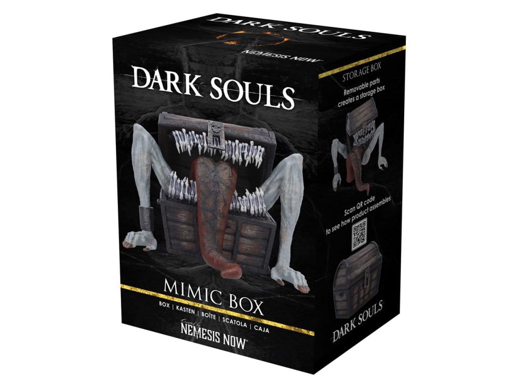 Oficiálně licencovaný sběratelský kus známého Mimic z série DARK SOULS, jehož velikost je 11,2 cm a je vyroben s důkladnou precizností. Vyznačuje se odnímatelným víkem, roztaženýma rukama, vyčnívajícím jazykem a ostrými, hrozivými zuby, všechny vylit z vysoce kvalitní pryskyřice a ručně malované. Bezpečně balené, aby všechny složité části dorazily v bezchybném stavu, což jej činí ideálním pro výstavu nebo dárek. Perfektní pro fanoušky DARK SOULS, sběratele videoher, nadšence pro fantasy a milovníky jedinečné hororově laděné dekorace. Tato skříňka Mimic je nutností pro jakoukoli sbírku DARK SOULS, dokonale zachycuje neklidný kouzlo nejzrádnější pokladnice hry.Rozměry: 11.2 x 18.5 x 9 cm.