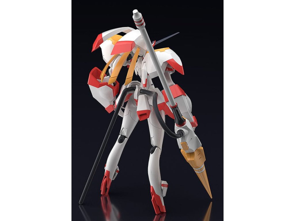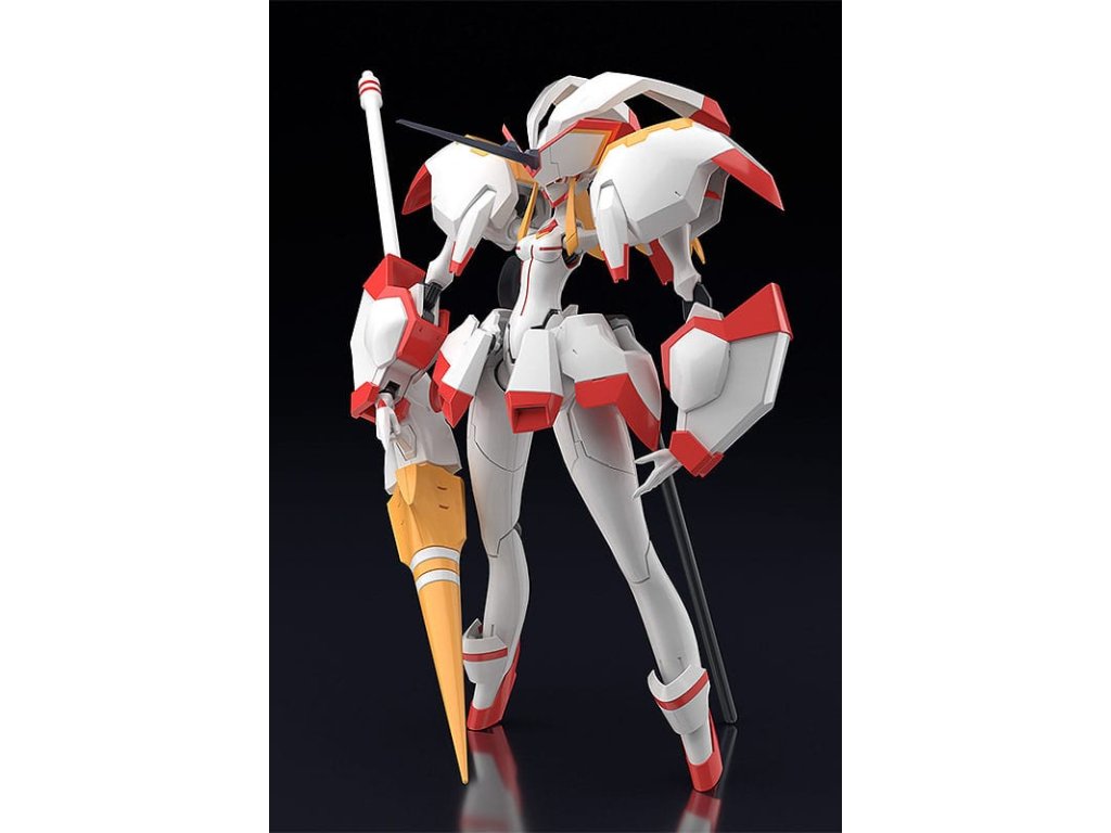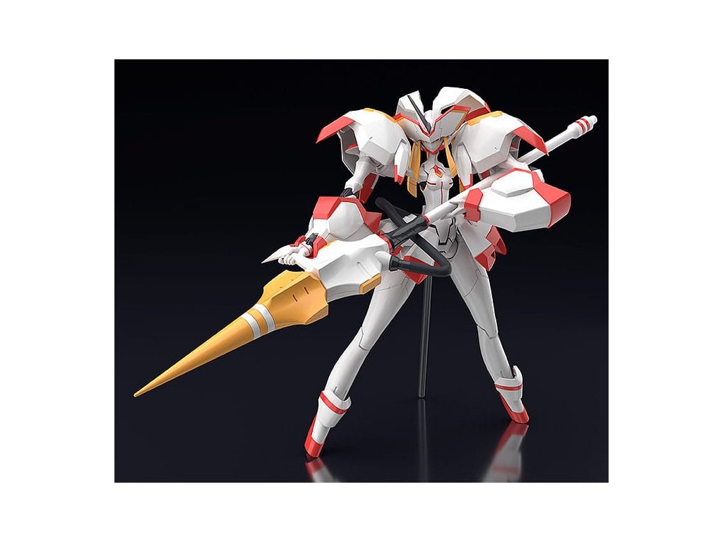 Z animované série 'DARLING v FRANXX' přichází přepracovaná sada plastového modelu FRANXX, který jezdí Hiro a Zero Two, Strelitzia! 'Ocelová dáma' byla pečlivě dohlížena sériovým mechanickým návrhářem Shigeto Koyama a modelována s velkou péčí tvůrcem sakanoryo (dragon studio)! Elegantní design mechy byl zachycen v nádherných detailech, aby si ho fanoušci mohli užít při stavění a zobrazování ve své sbírce! Model má po sestavení přibližně výšku 18 cm a obsahuje díly rozdělené do čtyř barev (bílá, červená, žlutá, šedá), stejně jako částečně předmalované díly, které modelu dodávají úžasný vzhled pouze pokud jsou složeny dohromady! Klouby sestaveného modelu jsou artikulované pro různé pózy a části obličeje jsou k dispozici ve dvou verzích: předmalovanou a prázdnou, kterou lze dokončit pomocí nálepek. Model je navíc doplněn o královskou píci dlouhou přibližně 27 cm, štítem a stojanem na model. Kabely na královské píci jsou vyrobeny z měkkého materiálu.