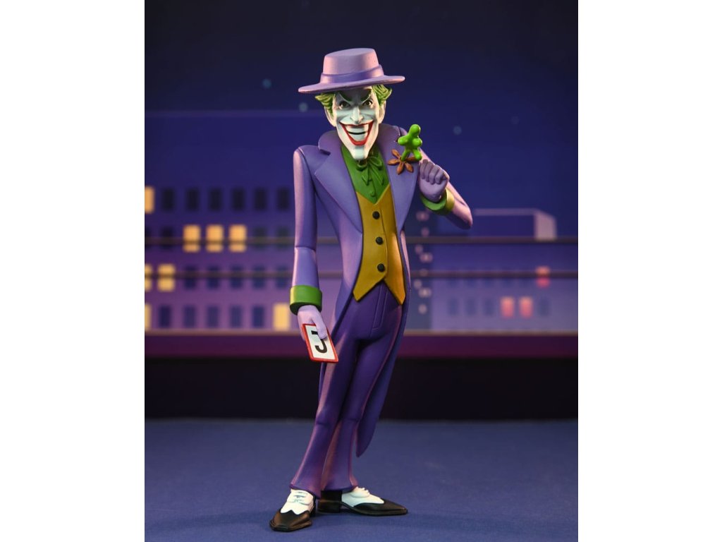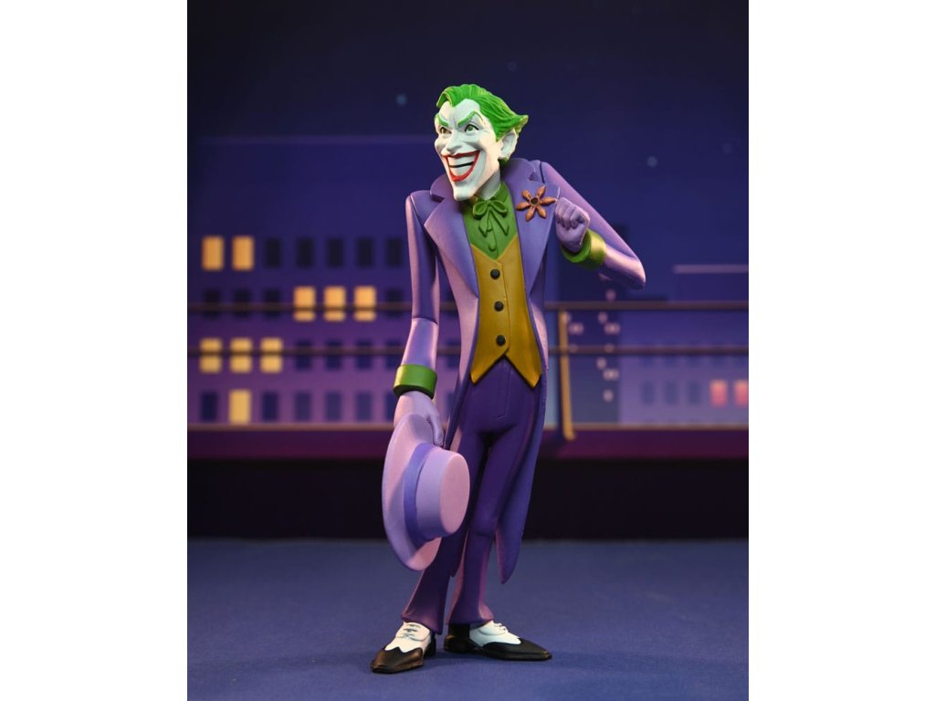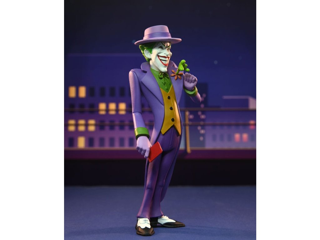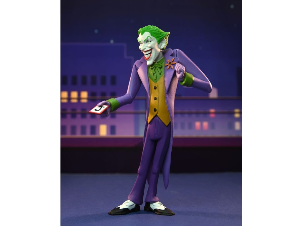 Založeno na jeho vzhledu v klasických komiksech! Joker se připojuje k řadě Toony Classics, což je zábavný pohled na oblíbené postavy z filmů, televize a populární kultury. Je vysoký přibližně 15 cm a obsahuje sundavací klobouk, hrací kartu a stříkací efekt, který se dá připevnit k květině na jeho klopě. Balení na blisterové kartě s bonusovým vystřihovánkem na pozadí.