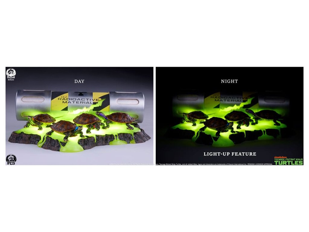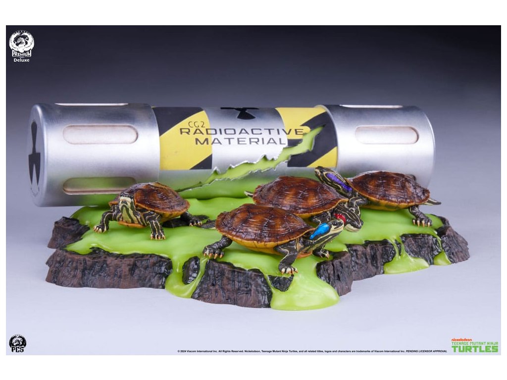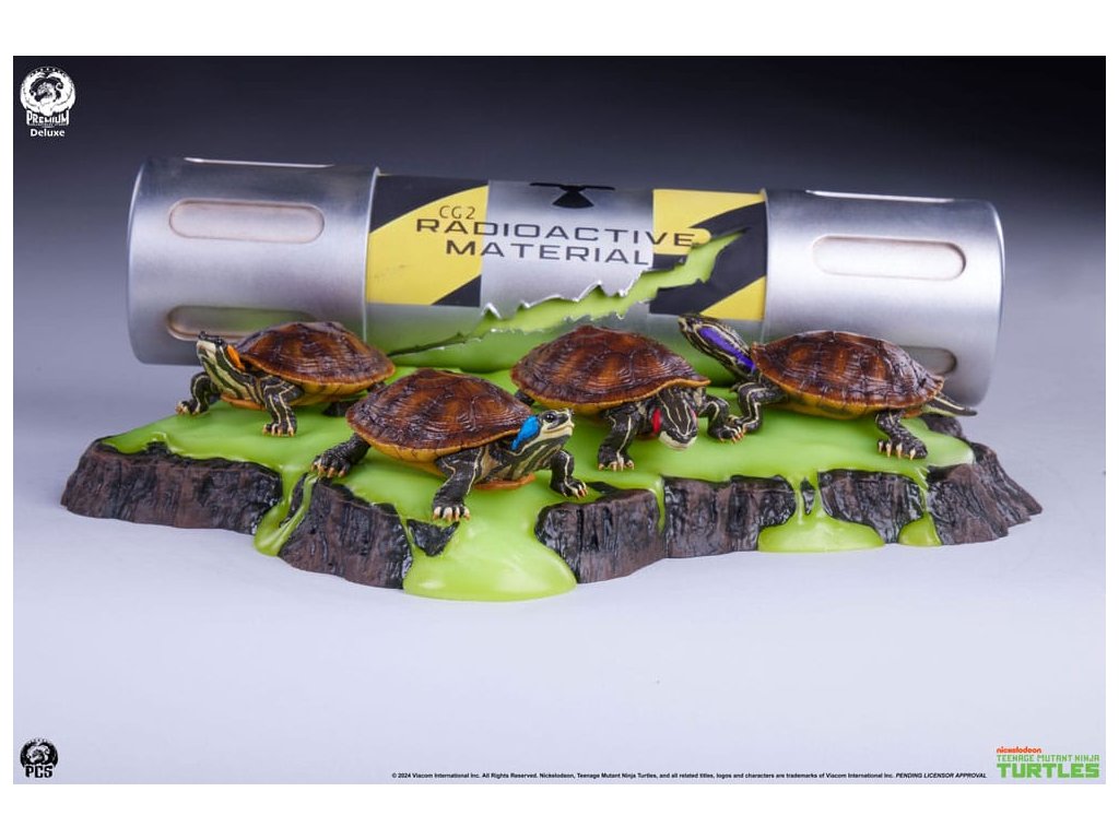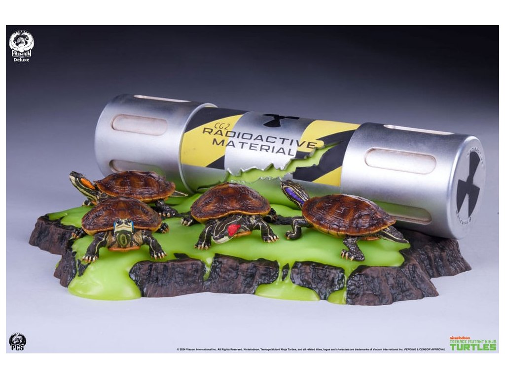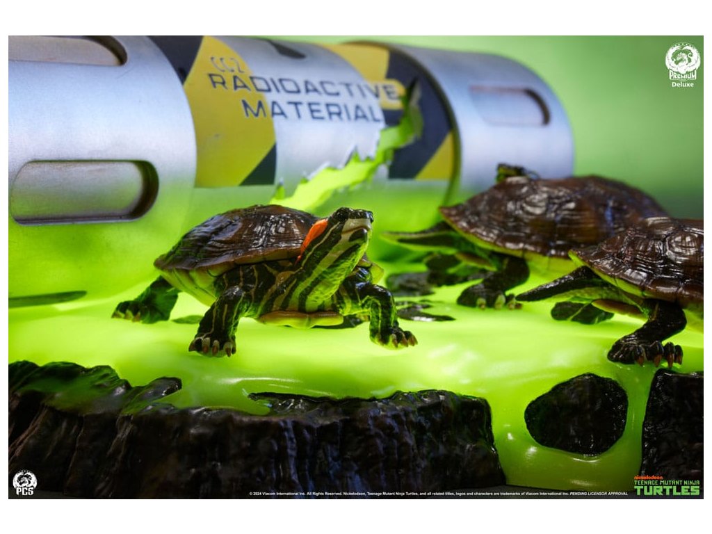 Premium Collectibles Studio s hrdostí představuje TMNT: Origins 1:1 Diorama - Deluxe Edition. Tato nová životná sběratelská položka vrátí vaši sbírku Teenage Mutant Ninja Turtles tam, kde vše začalo. TMNT: Origins Diorama je plně vyrytá sběratelská socha o rozměrech 13 cm x 36 cm x 33 cm, která znovu vytváří okamžik, kdy se mladí Leonardo, Raphael, Michelangelo a Donatello dostali do kontaktu s jasně zelenou slizí, která je proměnila na Teenage Mutant Ninja Turtles. Dokonce můžete vidět náznaky toho, jak se bude charakter každé postavy vyvíjet v jejich umístění na sběratelské položce. Leonardo stojí před svými bratry a již přebírá vůdčí roli. Michelangelo zvedá hlavu, jako by pátral po své oblíbené svačině - pizze. Donatellův přirozeně zvídavý duch je na obrazovce, když prozkoumává tajemný kanistr, a Raffael je připraven bránit své menší sourozence v případě potřeby. Všechny čtyři krásně detailní želvy, ztvárněné před jejich mutacemi, prolézají radioaktivní břečku, která se linula po kanalizační podlaze z prasklého kanistru, který se stal kotvou dioramy. Na krku každé želvy je také malá kapka barvy jako poklonu barvám, které později přijmou ve svých zločineckých postavách. Deluxe Edition to zvedá na další úroveň s poutavou funkcí LED světla, což přináší do radioaktivního života sliz a přidává působivý kontrast k realismu mladých želv.Přidejte do své sbírky a přineste domů TMNT: Origins 1:1 Diorama - Deluxe Edition od PCS dnes!