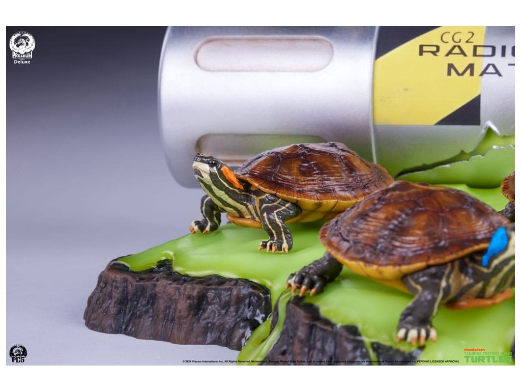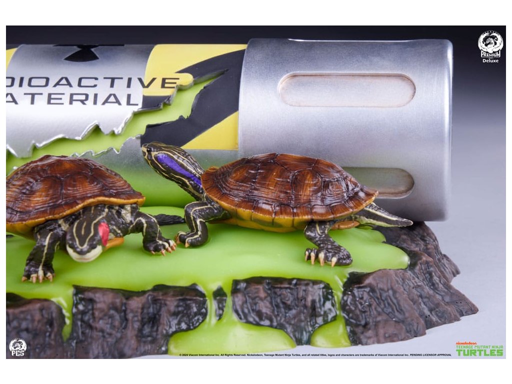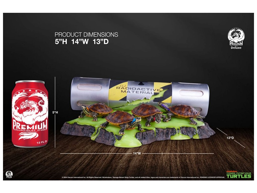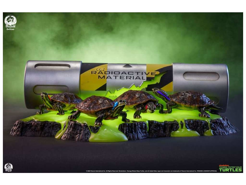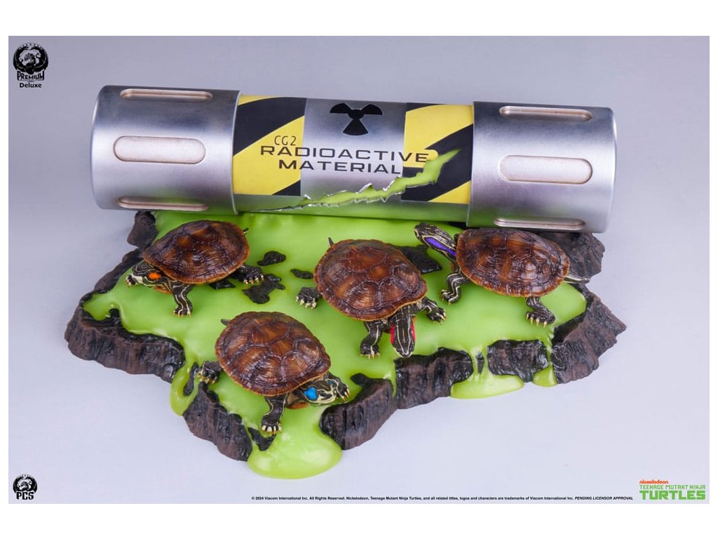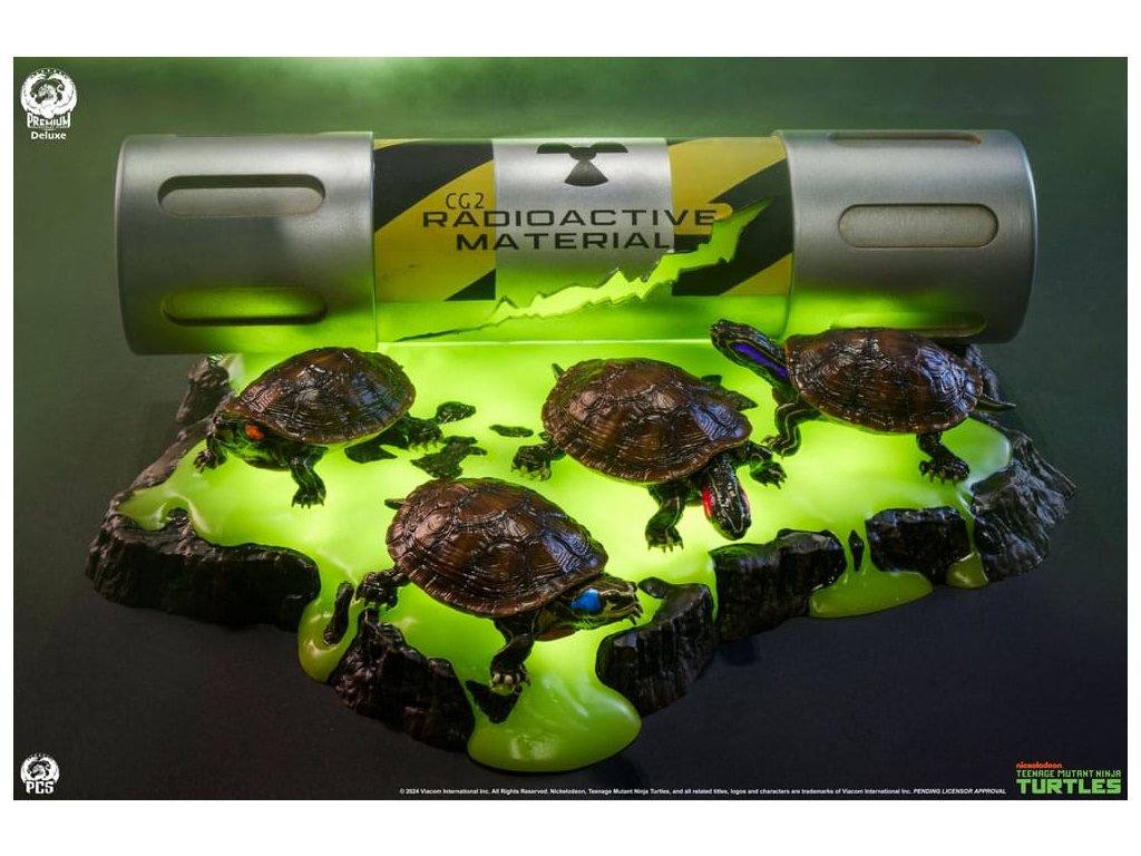 Premium Collectibles Studio s hrdostí představuje TMNT: Origins 1:1 Diorama - Deluxe Edition. Tato nová životná sběratelská položka vrátí vaši sbírku Teenage Mutant Ninja Turtles tam, kde vše začalo. TMNT: Origins Diorama je plně vyrytá sběratelská socha o rozměrech 13 cm x 36 cm x 33 cm, která znovu vytváří okamžik, kdy se mladí Leonardo, Raphael, Michelangelo a Donatello dostali do kontaktu s jasně zelenou slizí, která je proměnila na Teenage Mutant Ninja Turtles. Dokonce můžete vidět náznaky toho, jak se bude charakter každé postavy vyvíjet v jejich umístění na sběratelské položce. Leonardo stojí před svými bratry a již přebírá vůdčí roli. Michelangelo zvedá hlavu, jako by pátral po své oblíbené svačině - pizze. Donatellův přirozeně zvídavý duch je na obrazovce, když prozkoumává tajemný kanistr, a Raffael je připraven bránit své menší sourozence v případě potřeby. Všechny čtyři krásně detailní želvy, ztvárněné před jejich mutacemi, prolézají radioaktivní břečku, která se linula po kanalizační podlaze z prasklého kanistru, který se stal kotvou dioramy. Na krku každé želvy je také malá kapka barvy jako poklonu barvám, které později přijmou ve svých zločineckých postavách. Deluxe Edition to zvedá na další úroveň s poutavou funkcí LED světla, což přináší do radioaktivního života sliz a přidává působivý kontrast k realismu mladých želv.Přidejte do své sbírky a přineste domů TMNT: Origins 1:1 Diorama - Deluxe Edition od PCS dnes!
