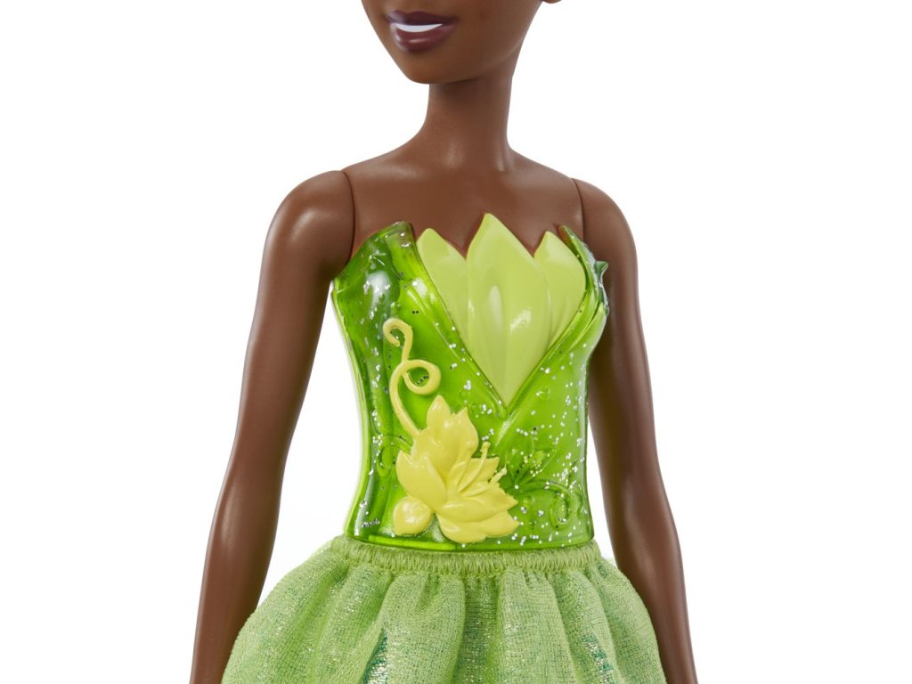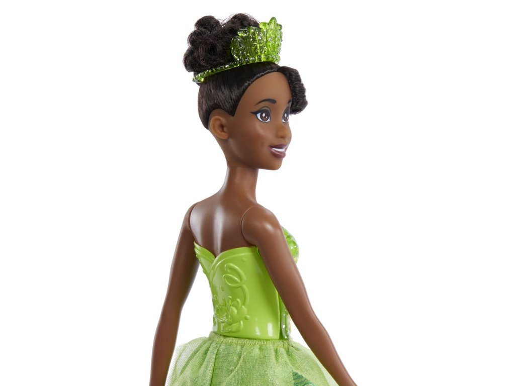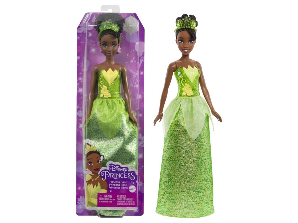 Tato kolekce panenek Disney Princess přináší oblíbené pohádkové princezny a pohádkové hrdinky. Panenka princezna Tiana má kloubové tělo, krásné dlouhé vlasy, třpytivý tvarovaný živůtek a odnímatelnou třpytivou sukni z měkkého materiálu s jedinečným potiskem charakteristickým pro její pohádku. Barvy a vzhled výrobku se mohou lišit.