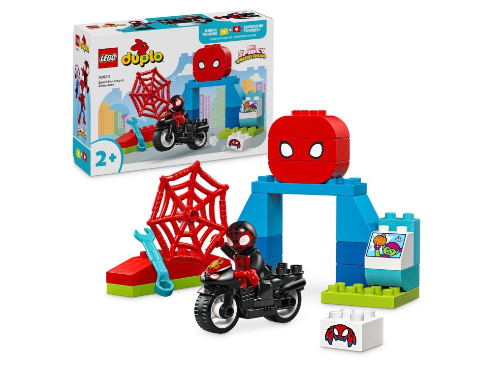 Tato fantasy stavebnice se Spideym je ideální na krátké zábavné hraní na každý den. Obsahuje figurku LEGO DUPLO Spina, hračku motorky a sestavitelnou základnu. Malé děti Spina usadí na motorku, přejedou po rampě a vrhnou se s ním do akce. Uprostřed boje pomohou figurce Spina vyhnout se letícím kostkám tím, že je chytí do pavučiny.