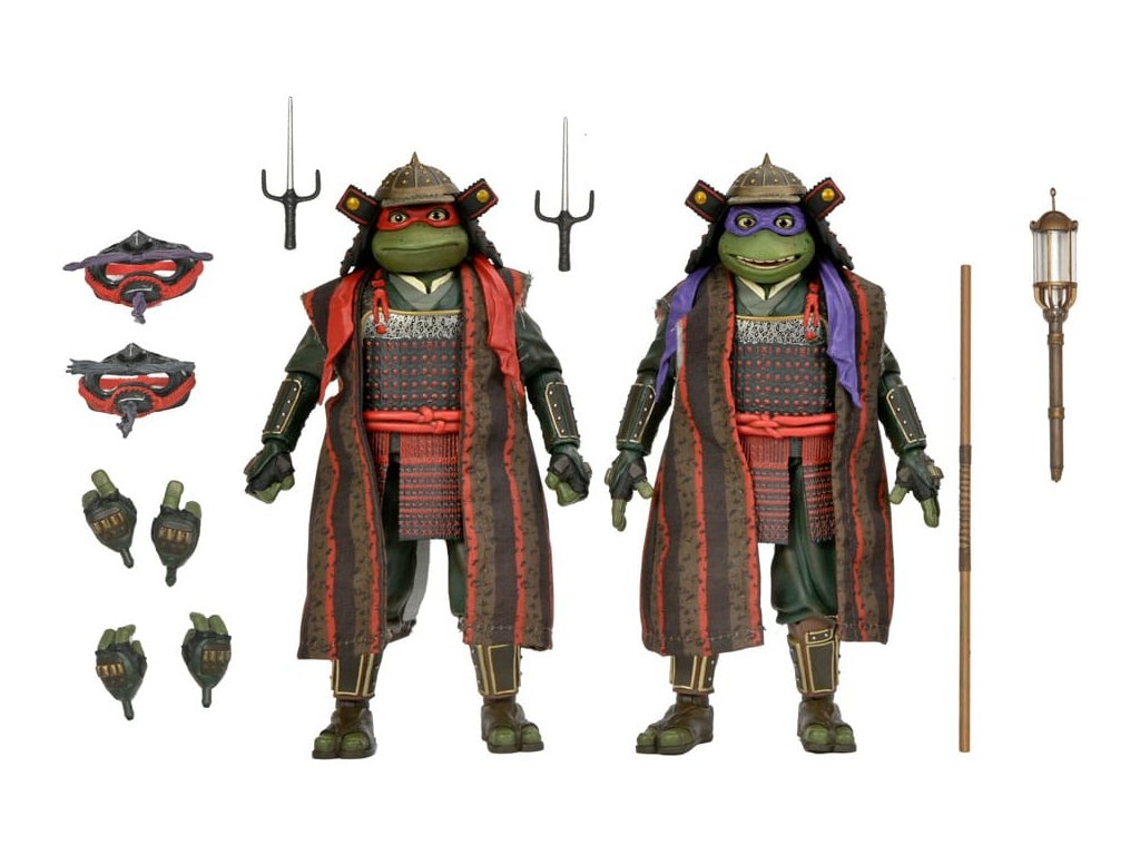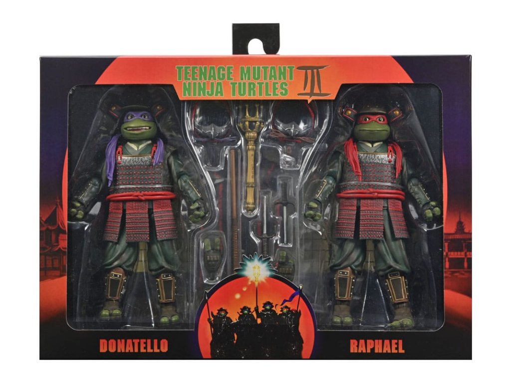 Doplněte svou sbírku filmové trilogie NECA TMNT těmito úžasnými dvojbaleními akčních figurek z Teenage Mutant Ninja Turtles III! Získejte Donatella a Raphaela v samurajském oblečení jako naprosto radikální akční figurky v měřítku 18 cm. Figurky jsou dodávány s vyměnitelnými rukama, 2 masky oni, 2 sáis, bo staff a Časovým žezlem. Balení s okénkem pro lepší prezentaci.