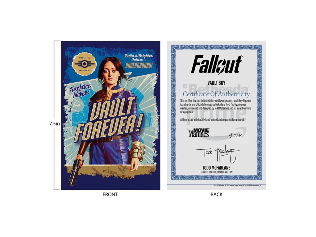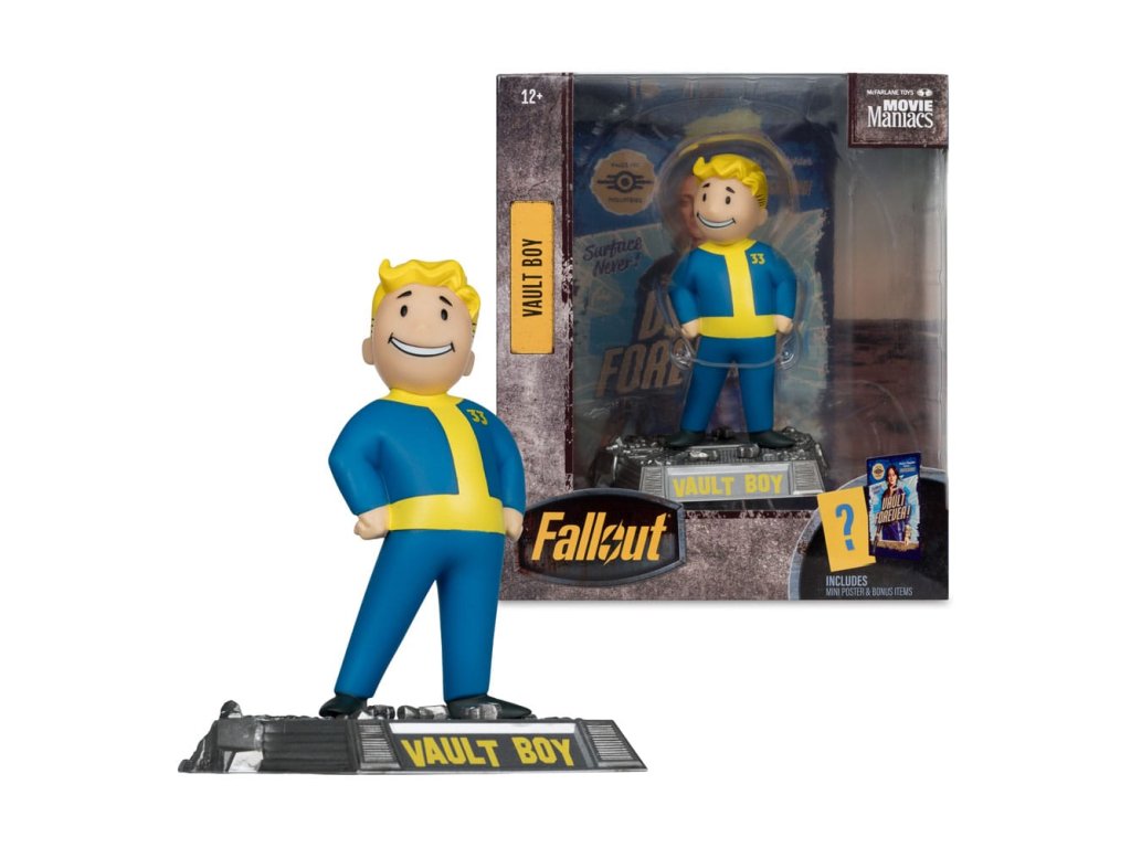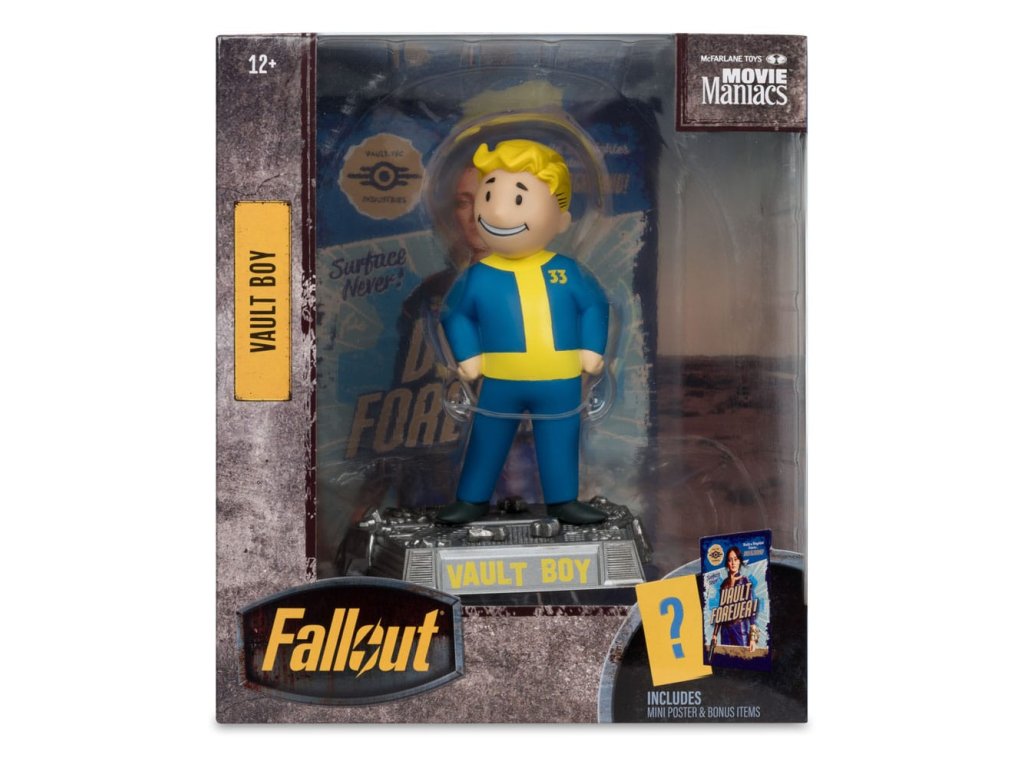 Maskot společnosti Vault-Tec. (Verze 2) - Neuvěřitelně detailní 5" figurka ve výchozí poloze na základě původní seriálové řady FALLOUT od studií Amazon MGM - Příslušenství zahrnuje environmentalistickou základnu, mini plakát a pozadí - Také zahrnuje tajnou bonusovou položku - Sbírejte všechny figurky FALLOUT od McFarlane Toys