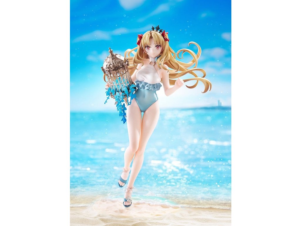 Z populární mobilní hry 'Fate/Grand Order' se objevuje 'Beast/Ereshkigal' jako figura v měřítku 1/7 ve své první formě ascendence! Paní podsvětí klesá na letní pláž-. Její první plavecký kostým ascendence je věrně znovu vytvořen s jemnými texturami a jemnými volány. Velká pozornost byla věnována také sochařství jejího těkajícího vlasu a krásně stínované barvy vlasů. Klec kopí, kterou drží, byla pečlivě zpracovaná až do nejjemnějších detailů, což jí dodává impozantní přítomnost. Přivítejte její jemný úsměv do své sbírky. Orientační datum vydání: leden 2027