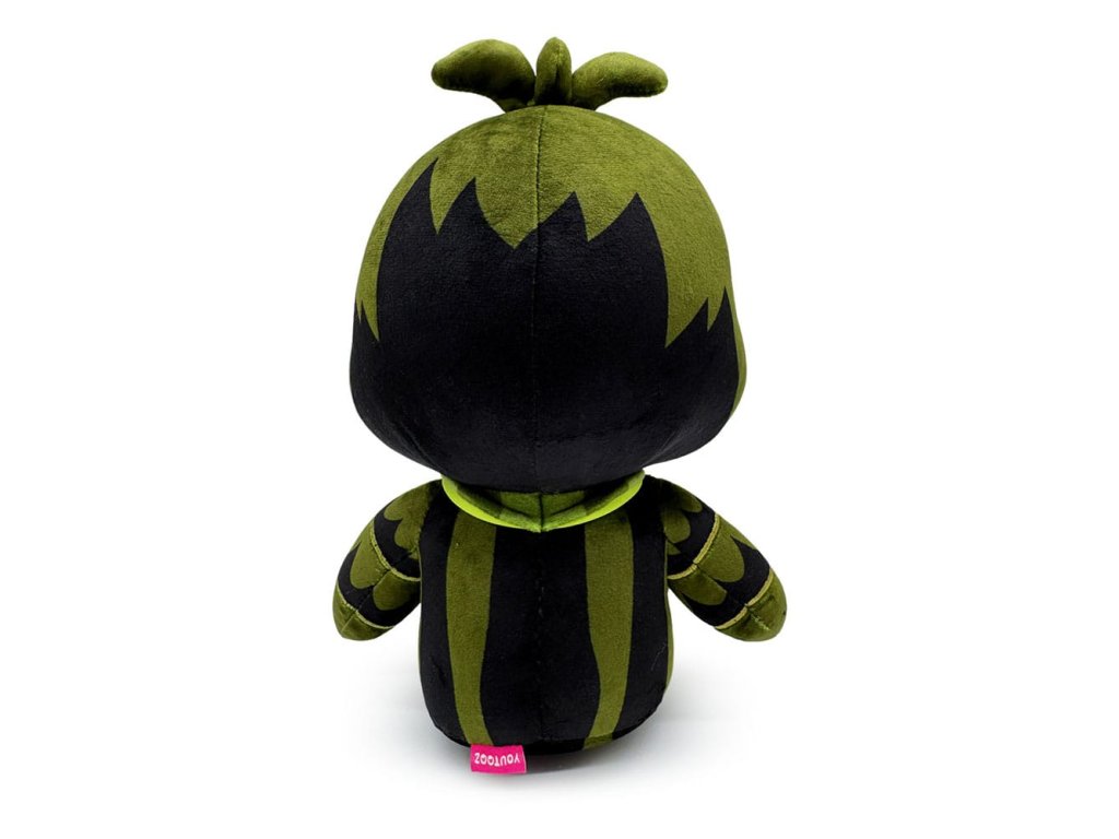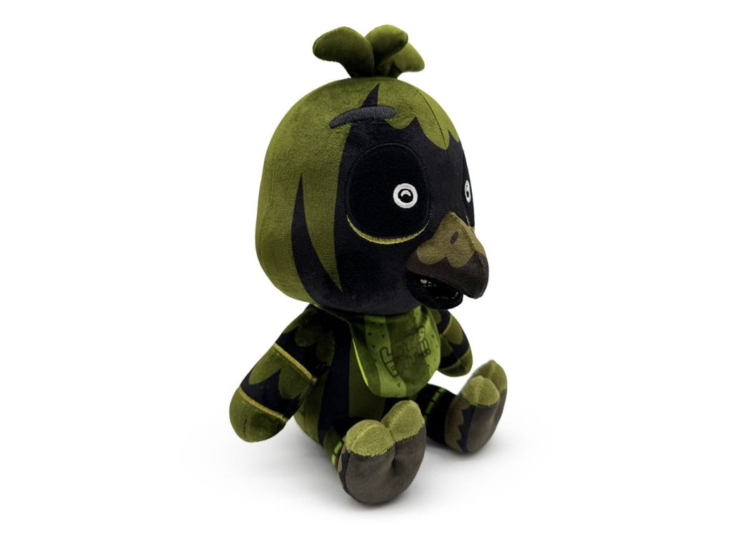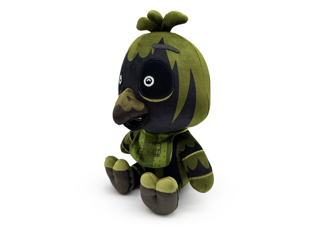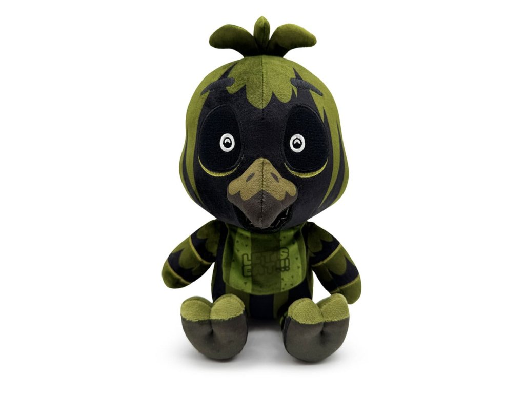 Z herního automatu rovnou do vašich náručí, Phantom Chica je tady a je měkčí než kdy dříve! Sedí 23 centimetrů vysoká s dvojicí zářivě bílých zornic vykukujících z hlubokých očních důlků své hlavy, tenká řada vnitřních zubů je skryta za jejím špičatým zobákem a trojice peříček trčí z vrcholu její hlavy. Je zbarvená tmavě zeleně a tmavé stíny se táhnou přes její tělo, na krku nosí svůj synonymní bryndáček 'Lets Eat!!!', zatímco drápaté nohy má vykrojené vpřed. Tato plyšová hračka je do švů naplněna 100% PP bavlnou a je vyrobena z normálních a sublimovaných minky materiálů, což je absolutně dokonalé pro mazlení nebo skrývání se v temnotě s ní!O Five Nights at Freddy's:Five Nights at Freddy's je hororová hra o přežití, kterou vytvořil Scott Cawthon. Hra je zasazena do prostředí, kde hráč pracuje jako noční ostraha v rodinné pizzerii Freddy Fazbear, rychle se dostává do sporu s kolekcí vědomých animatroniků. Krátce po tom, co byla hra vydána v roce 2014, získala kultovní sledování a rychle se vyvinula do komplexního fiktivního vesmíru doplněného o lore a různé spin-offy.