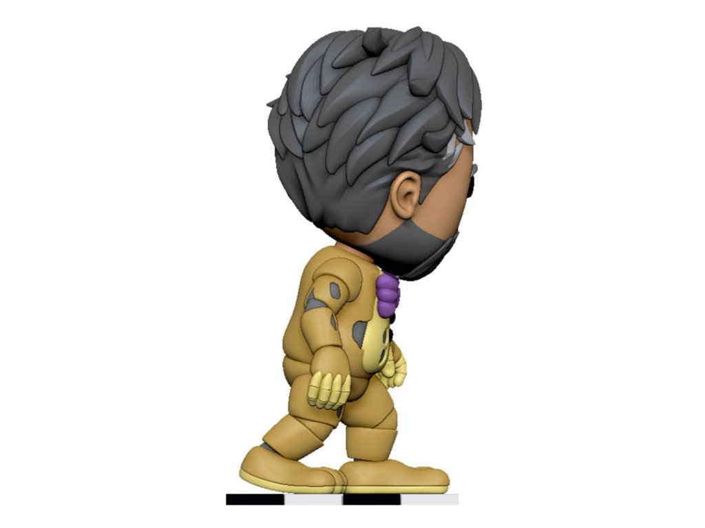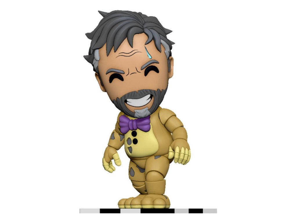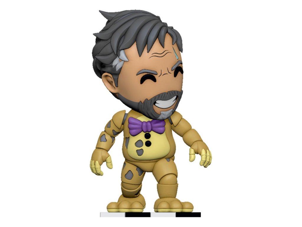 'Vždy se vracím!' Je pravda, vždy se vrací! A Youtooz mu je slabý na odpor! Ale počkejte, je to žlutý králík nebo William Afton? Je to obojí! A vy můžete rozhodnout, který z nich to je, protože tato figurka má 2 vyměnitelné hlavy! Jednu Žlutého Králíka s hrozivě zářícími bílými očima a vyceněnými zuby, jak když se mu srst odlupuje a odhaluje chladnou animatronickou lebku s jedním dlouhým uchem, které se ohýbá dopředu, zatímco druhé je rozlomené napůl. A druhou Williamovu vousatou usměvavou tvář s kapkou potu stékající po jeho vráskách a šedé vlasy spadající na stranu. Tato figurka je vysoká 13,7 cm, je v póze, jak se naklání dopředu s rukama na stranách a světle fialovou motýlkovou mašlí na hrudi se rozpadajícího žlutého těla. Na vnějšku balení je vidět jeho postava, jak blokuje východ a jedinou šanci na útěk. Zatímco interiér je plný polozhaslého světla barevných koulí, které vypadávají na ochranný rukáv, a jeho figurka je vidět skrze velké průhledné okno na přední straně balení. Tento sběratelský předmět se dodává v matném, reliéfním, ochranném vnějším obalu a v plastovém obalu na míru pro maximální ochranu během přepravy. O Five Nights at Freddy's: Film Five Nights at Freddy's přináší děsivý svět populární hororové herní franšízy stvořené Scottem Cawthonem do života. Film se odehrává v děsivé pizzerii Freddy Fazbear a sleduje problémového nočního strážce, který bojuje o přežití proti zlým animatronikům.