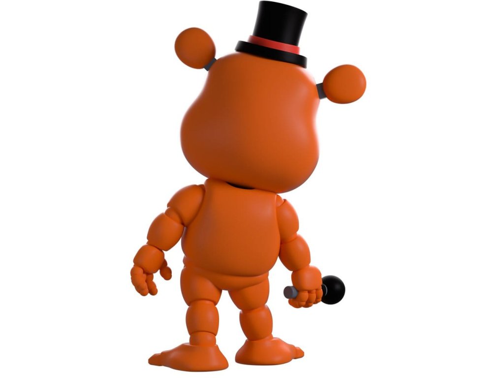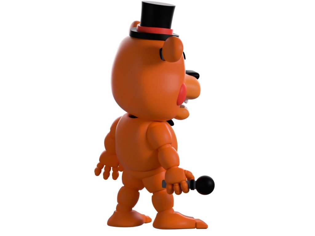"Můžeš mi věřit!"Freddy je náš přítel, že? Proč by se jinak vracel k Youtooz?! Stojí vysoký 4,8 palce a drží mikrofon v pravé ruce mimo stranu, z hlubokých důlek září jasomodré zornice, zatímco růžové tváře odpočívají po obou stranách silného, zubatého čumáku. S černým kloboukem umístěným mezi dvěma prodlouženými ušima a odpovídající motýlkem pod širokou bradou jsou k kulatému oranžovému tělu připojeny segmentované končetiny. Balení ukazuje Freddyho, jak se předklání ze stínu řady animatroniků, zatímco interiér ukazuje do temné místnosti s kostkovou podlahou a starými monitory naskládanými v pozadí. Ochranný obal je poté pokryt svislými modrými a černými pruhy s tlustými dráty visícími z vrchu, a jejich figurka je vidět skrz velké, čiré okno na přední straně balení. Tento sběratelský kus je dodáván v matném, raženém, ochranném vnějším obalu a v plastovém chrániči přizpůsobeném na míru pro maximální ochranu během dopravy.O pěti nocích u Freddyho:Pět nocí u Freddyho je hororová hra na přežití vytvořená Scottem Cawthonem. Hra je situována do prostředí, kde hráč pracuje jako noční ostraha ve Freddyho rodinné pizzerii, kde se rychle dostává do sporu se sbírkou citlivých animatroniků. Krátce po vydání hry v roce 2014 získala kultovní následování a rychle se vyvinula v komplexní fiktivní vesmír doplněný o základní příběh a různé spin-offy. Orientační datum vydání: červen 2026