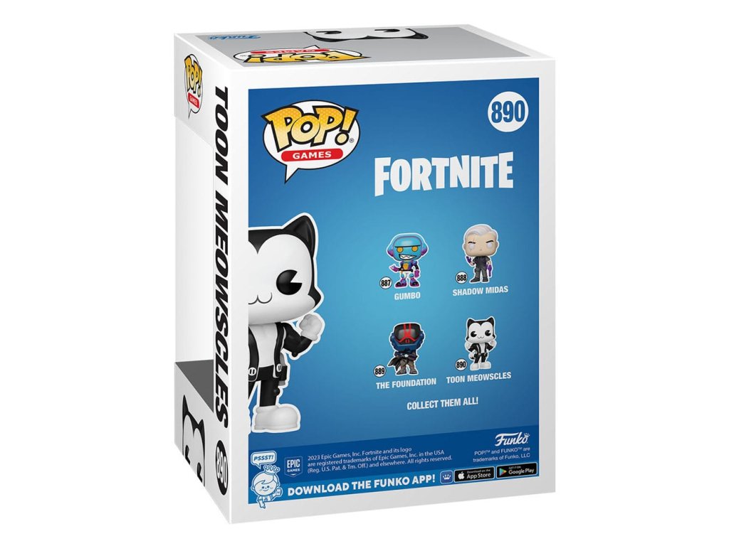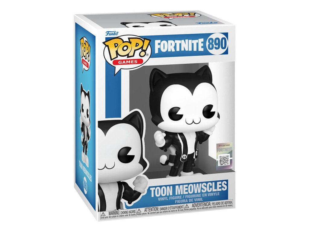 Tato Pop! figurka představuje Toon Meowscles, vzácný skin, který je obří černobílou kočkou.