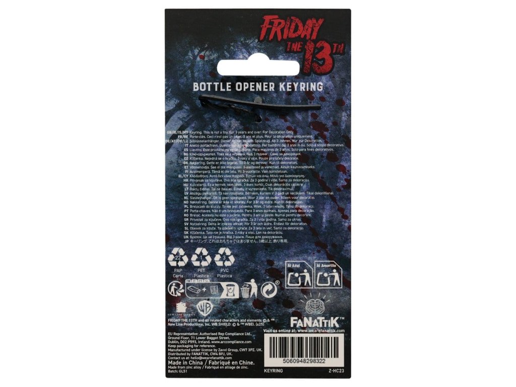 Otevřete své lahve s trochou pomoci od Jasona! Dokončeno v elegantní černé niklové úpravě, tento mohutný kovový otvírák zobrazuje všechny děsivé detaily ikonické hokejové masky Jasona Voorheese, zároveň slouží jako užitečný každodenní doplněk. Připevněte jej na klíče, tašku nebo na přežití... protože nikdy nevíte, kdy budete potřebovat otvírák na lahve. Má potěšující rozměry 73 × 69 mm a je perfektní pro předvedení vaší lásky k hororovým filmům! - Oficiálně licencováno - Černá niklová úprava - Velikost 79 x 60mm