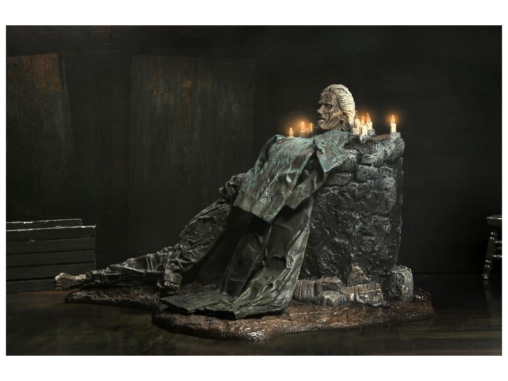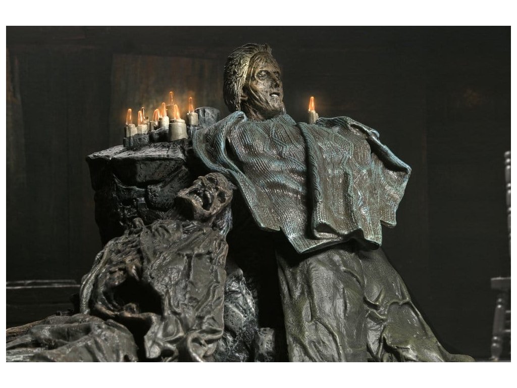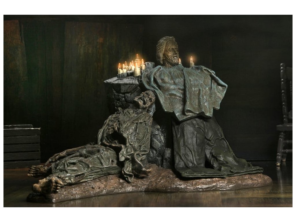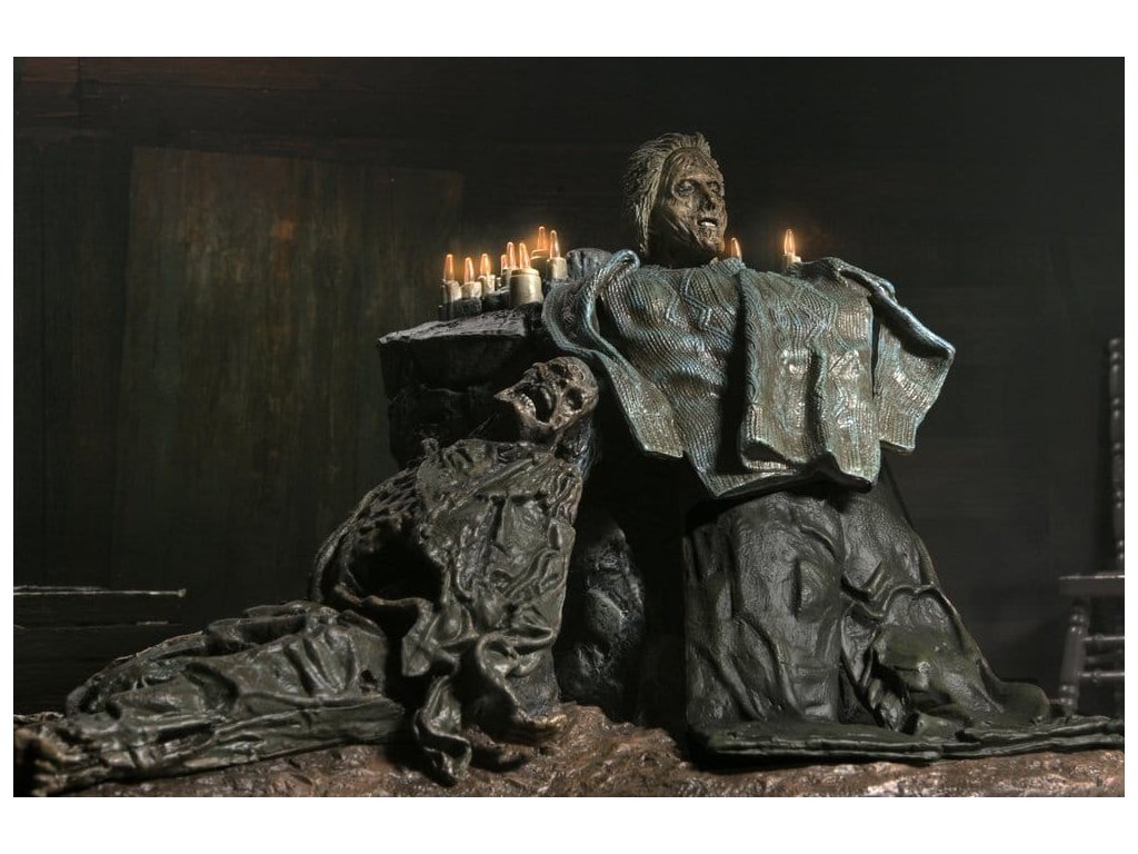 Hluboko v lesích, nedaleko tábora Crystal Lake, představuje NECA tuto zcela novou Dioramu Pamelina oltář z hry Pátek třináctého. Hlava milované matky Jasona, Pameliny Voorhees, je plně vystavena na počest její památky a odkazu. Tato diorama je v měřítku a kompatibilní s akčními figurkami NECA o velikosti 7 palců (prodávají se zvlášť). Obsahuje kartonové pozadí pro zobrazení a LED svíčky, které blikají pro extra děsivost. (Vyžaduje 2 AAA baterie - nejsou součástí balení.) Oltář bude středobodem vaší sbírky Jasona. Přiveďte domů Jasonovu maminku, aby mohla mluvit s ním za hrob a zabíjet, zabíjet, zabíjet... Balená v sběratelsky přátelské krabici s průhledným oknem.