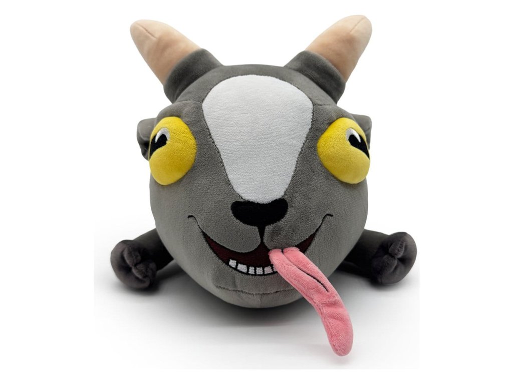 Podívejte se, kdo právě padal do Youtooz z exploze, kterou rozhodně, na 100%, nezpůsobil! Leží 16 palců dlouhé a váží přibližně 2 libry/1kg, dlouhý růžový jazyk visí z jejích otevřených úsměvných úst, zatímco na její obličej vede bledá značka od malého černého nosu mezi dvěma žlutými očima s vodorovnými zorničkami. S špičatými béžovými rohy, které vystupují z vrchu hlavy, leží kozí nožky pod její bradou a rozprostírají se na zadek pod krátkým dvoubarevným ocasem. Tato plyšová hračka je našitá do švů s 100% PP bavlnou a je vyrobena z nejměkčího minky materiálu, naprosto perfektní k objetí nebo k vystřelení z děla! O Goat Simulatoru: Goat Simulator je, no, simulátor koz! Vyvinut a vydán studiem Coffee Stain, první ze dvou her (a několika portů) byl vydán v roce 2014, umožňuje hráčům naplnit svůj celoživotní sen stát se kozou a dělat vše pro to, aby způsobili co nejvíce škod!