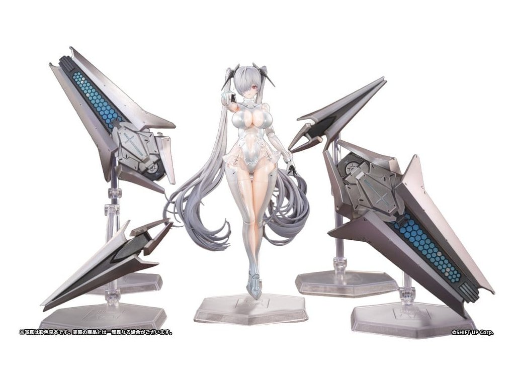 Tato akční figurka pochází z Bohyně vítězství: Nikke. Je přibližně 16 cm vysoká a má různé body artikulace a vyměnitelné díly. To znamená, že figurka může být prezentována v různých pózách. Obsahuje: - Hlavní figurku - 3 x Alternativní část obličeje (bezvýrazný, naštvaný, s očima zavřenýma, včetně výchozího) - 1 x Mini nástroj NEO pro změnu směru očí x1 - 5 x Alternativní sada částí ruky (včetně výchozího) - 2 x Skleněný střevíc (velký) - 2 x Skleněný střevíc (malý) - 1 x Tělo pro pózu ostrostřelce (není pózovatelné) - 1 x Sada dvojitých ocasů pro pózu ostrostřelce - 5 x Sada základny stojanu v podobě šnečí ulity. Orientační datum vydání: únor 2027